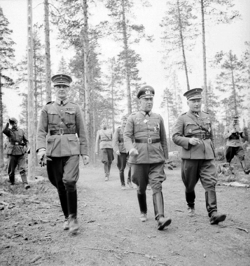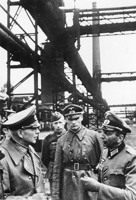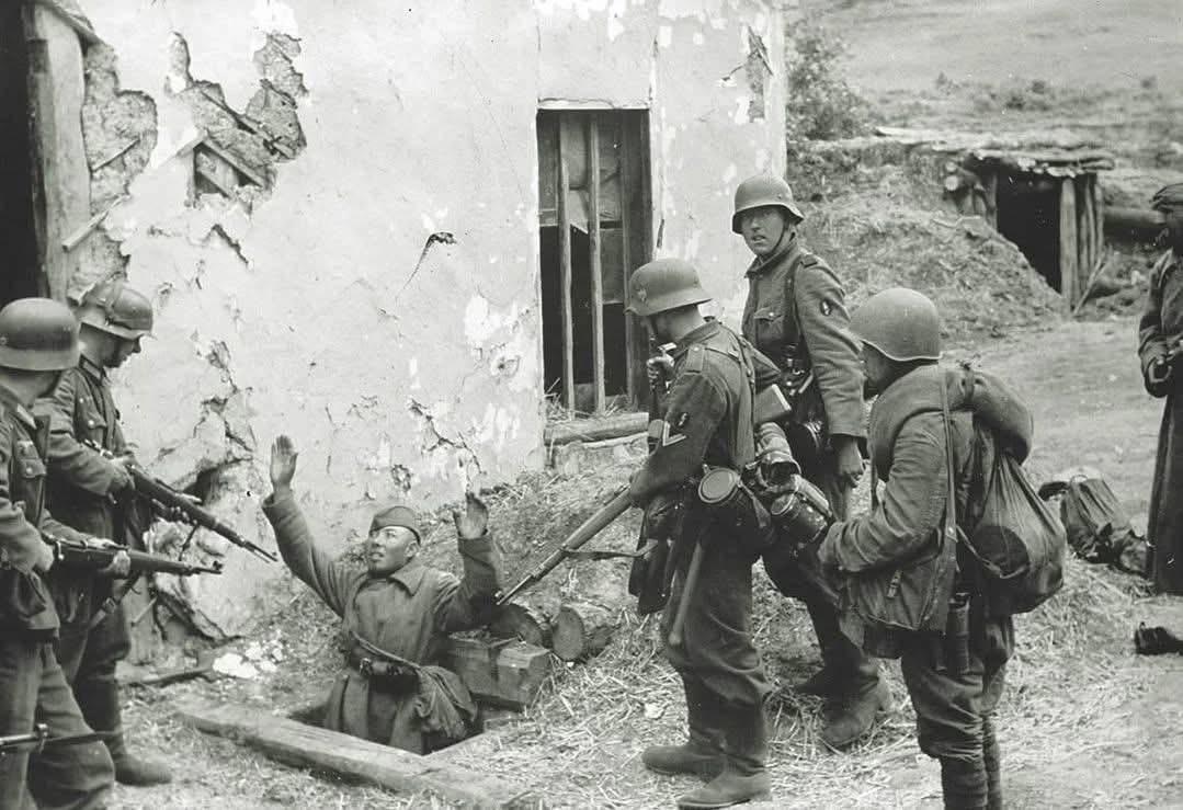 二战德军突入苏联境内初期德军作战真实历史影像! 图一:1941年8月29日,德国陆军大将冯·法尔肯霍斯特与芬兰少将哈尔马尔·西利阿斯武奥在芬兰库萨莫会面,商讨对苏作战事宜。 整个二战,芬兰人还是相当理性,并未盲目绑死在德军战车上,更未觊觎苏联领土。基本止于保护自身领土完整。到1944年德军颓势显露之时,便迅速与盟军、苏军暗自媾和,后续甚至开始驱逐境内德军。 图二:1941年9月,《纽伦堡种族法》的主要起草者之一、德国内政部长威廉·弗里克访问斯洛伐克布拉迪斯拉发时,正接受所谓德意志少女联盟成员献花。 图三:1941年9月,苏联境内德军北方集团军群总司令冯·李布与第18集团军司令冯·屈希勒尔正在前线视察。 图四:1941年11月,主导基辅包围战的德军第1装甲集群司令冯·克莱斯特大将视察位于乌克兰的一处新近占领的钢铁厂。 保罗·冯·克莱斯特大将是纳粹德国陆军元帅、二战期间最具代表性的装甲部队指挥官之一,也是唯一由装甲集群司令直接晋升为元帅的德军将领。 图五:苏联境内,德军正在搜捕藏匿地下通道的苏军。 一名苏军远东少数族裔士兵高举双手向德军缴械投降。目测应该是1941年巴巴罗萨行动初期。(时间不详)老照片 二战