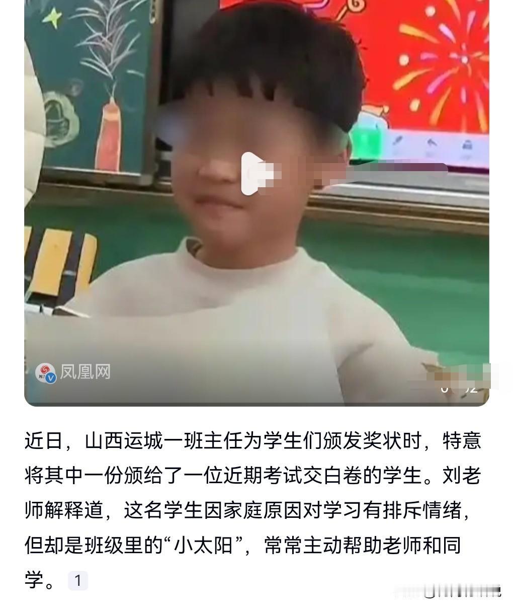 有的孩子天生不爱学习,那是没办法的事情。 我有个表弟10多岁了,从来没写过家庭作业,这么多年。 近日,小学老师给交白卷的学生发奖状。 这个学生也是非常抗拒学习,但是他有一个很好的优点,那就是乐于助人。 人品那是非常没得说的,经常帮助别人。 可就是不爱学习。 罢了罢了,不爱学习那也没办法,只要人品好就行了。 乐于助人的人绝对是好人。