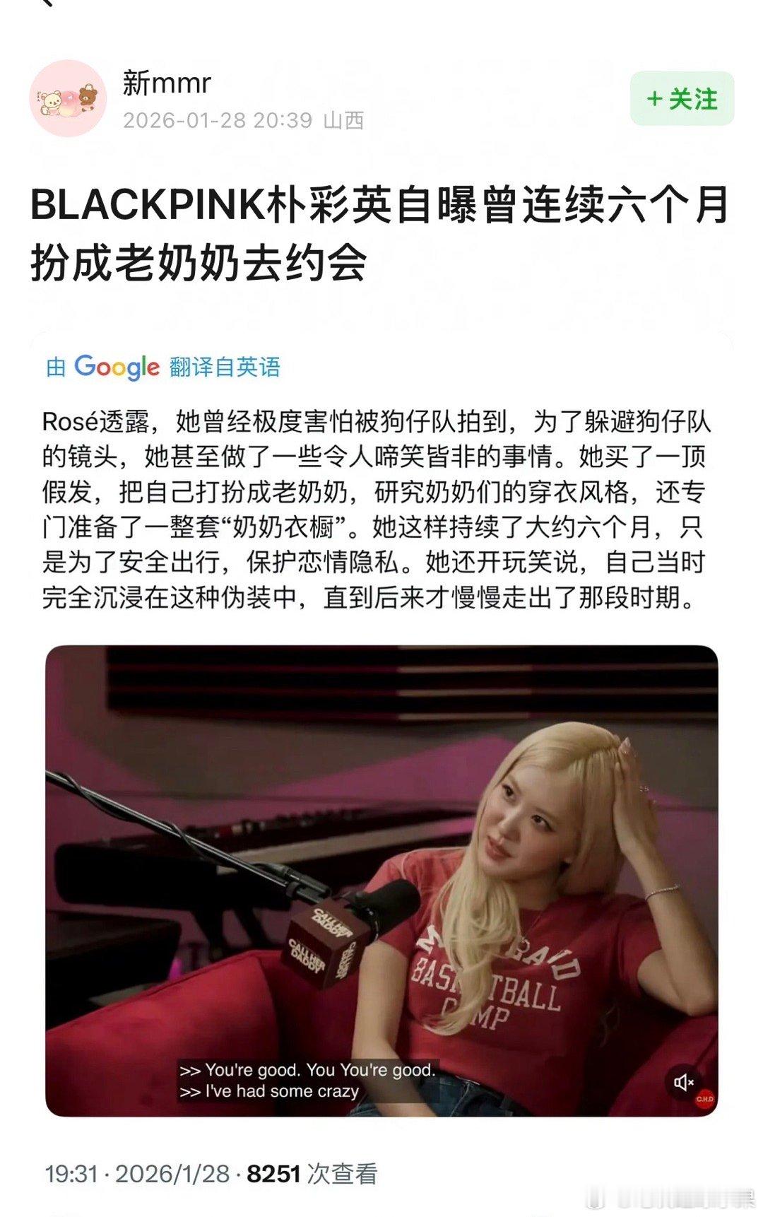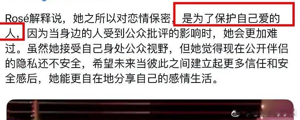 Rose朴彩英解释道,她之所以对恋情保密,是为了保护自己爱的人,公开伴侣的隐私还不安全