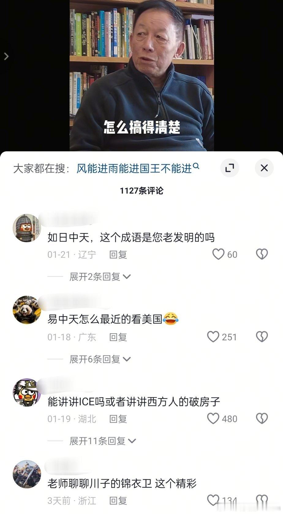 因为ICE事件,易中天的评论区变成这样了。网友希望易中天讲讲牢a,讲讲ICE和美国。