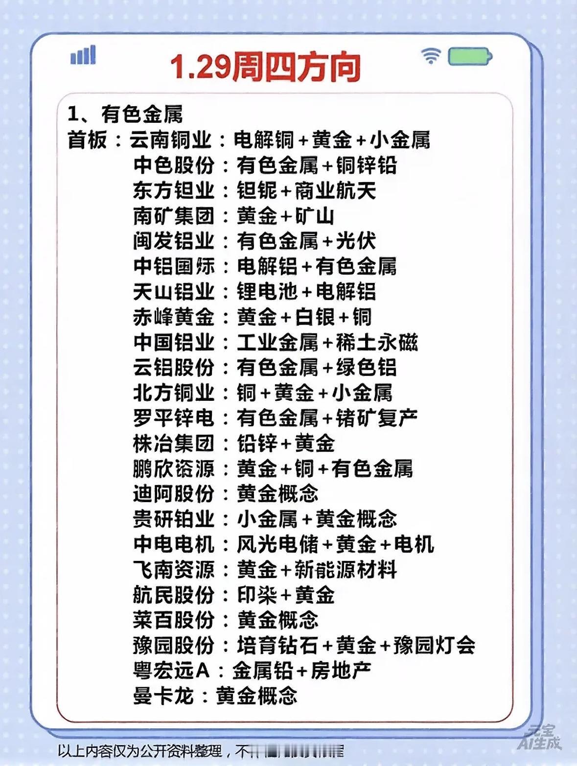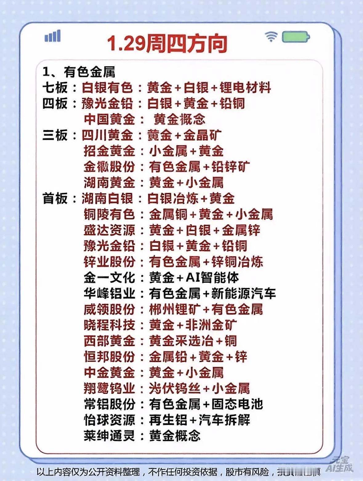 📈1.29周四方向:芯片、化工、算力、机器人五大板块分析! 黄金白银有色板块爆发!龙头股掀涨停潮,锂电光伏概念跟涨,注意风险别追高