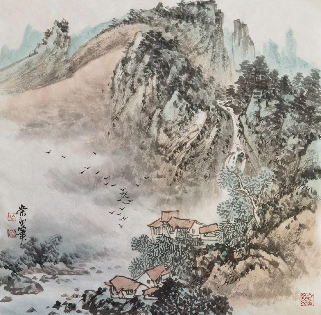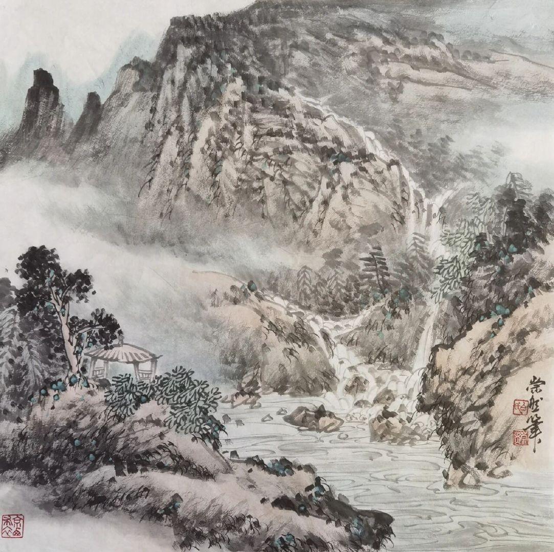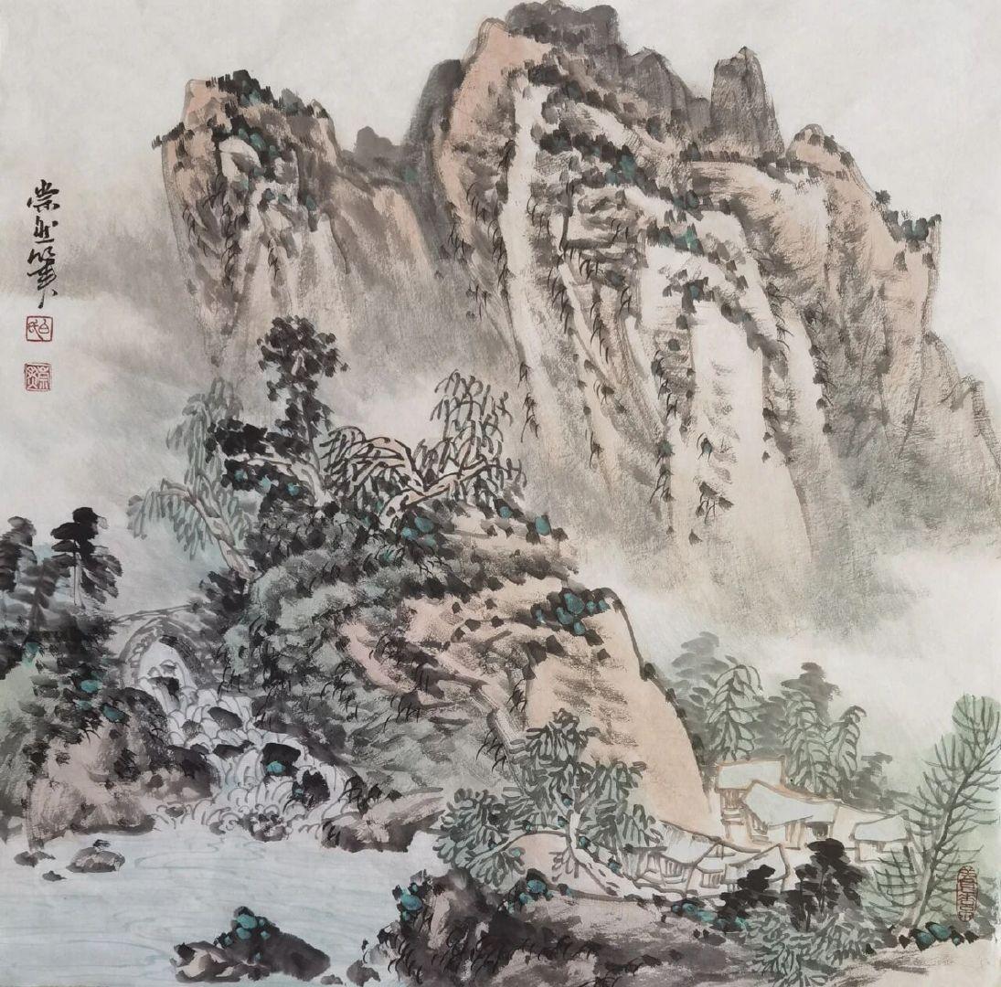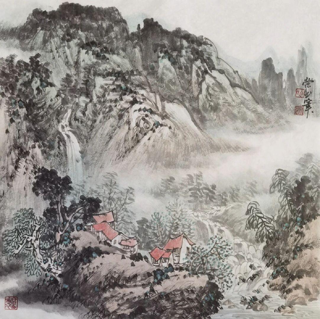 白崇然《妙造自然》:笔墨与天地的对话 白崇然的“妙造自然”,并非复刻山水,而是让笔墨融入自然之中。 观他笔下之山,皴法尽显石之刚硬,却于峰峦间留出一缕云气,淡墨晕染仿若山在呼吸;画中之水,线条暗藏流之柔美,却在波心点上几笔浓墨,好似有鱼群匆匆游过。花并非簇拥而开,而是两三枝斜逸而出,花瓣以没骨法晕染,露珠仅用一点留白,透着晨雾的润泽。 他画树,不刻意追求笔直,枝桠歪歪斜斜,恰似被山风梳理过一般;写石,不求工整规整,棱角间透着野趣,仿佛刚从溪涧中捞出,还带着青苔。墨色浓淡相宜,浓墨是树之骨,淡墨是雾之魂,几笔色彩点染,并非为了艳丽,而是为了让自然的气息更加鲜活——一点赭石是秋日之叶,一抹石绿是春日之苔。 “妙造”二字,蕴含着他的巧思:并非对着自然照本宣科地作画,而是将自己置身于山水之间,聆听风的声音,观赏云的影子,再用笔墨将这份心动落于纸上。所以在他的画中,山有灵性,水有韵味,每一株花草树木都带着与天地对话的温柔。 原来,最高明的“造”,是让笔墨读懂自然,让观者看见初心。