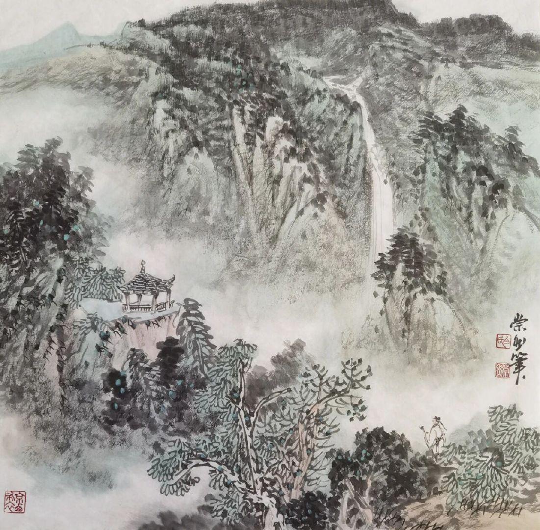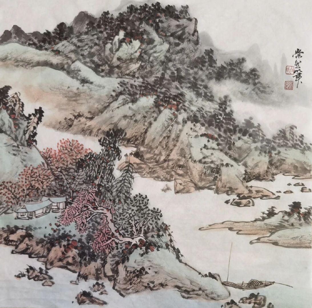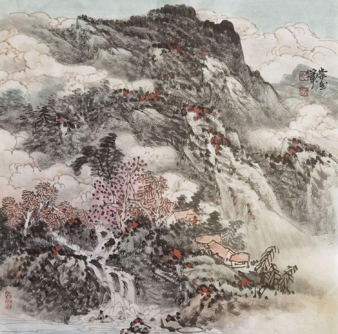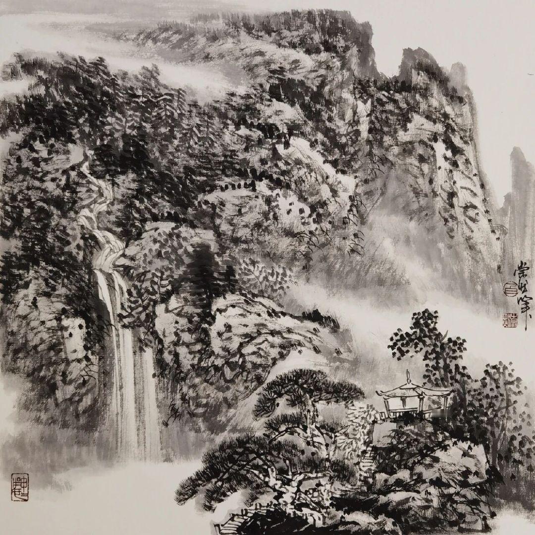白崇然《妙造自然》:笔墨与天地的对话 白崇然的“妙造自然”,并非复刻山水,而是让笔墨融入自然之中。 观他笔下之山,皴法尽显石之刚硬,却于峰峦间留出一缕云气,淡墨晕染仿若山在呼吸;画中之水,线条暗藏流之柔美,却在波心点上几笔浓墨,好似有鱼群匆匆游过。花并非簇拥而开,而是两三枝斜逸而出,花瓣以没骨法晕染,露珠仅用一点留白,透着晨雾的润泽。 他画树,不刻意追求笔直,枝桠歪歪斜斜,恰似被山风梳理过一般;写石,不求工整规整,棱角间透着野趣,仿佛刚从溪涧中捞出,还带着青苔。墨色浓淡相宜,浓墨是树之骨,淡墨是雾之魂,几笔色彩点染,并非为了艳丽,而是为了让自然的气息更加鲜活——一点赭石是秋日之叶,一抹石绿是春日之苔。 “妙造”二字,蕴含着他的巧思:并非对着自然照本宣科地作画,而是将自己置身于山水之间,聆听风的声音,观赏云的影子,再用笔墨将这份心动落于纸上。所以在他的画中,山有灵性,水有韵味,每一株花草树木都带着与天地对话的温柔。 原来,最高明的“造”,是让笔墨读懂自然,让观者看见初心。