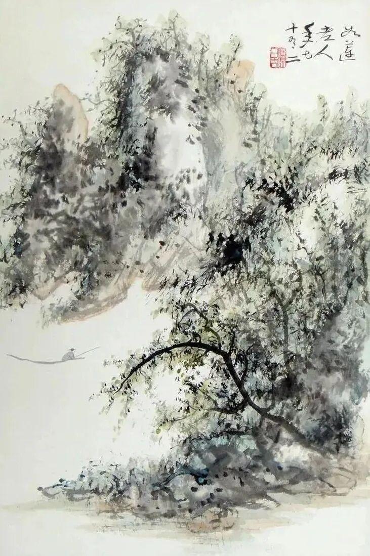 刘知白“广师造化”:笔尖藏着山水的魂魄 🏞️ 刘知白的画,是从自然里“偷”来的灵气。 他笔下的山,不是凭空画的——峰峦的起伏藏着真山的骨,皴法里能看出岩石的肌理,像是用手摸过崖壁才落的笔;他画的水,带着流动的劲,墨色的浓淡跟着浪势走,仿佛能听见溪流撞石的声。 “广师造化”,是他对自然的敬畏。看那泼墨的竹林,叶叶带风,有的被吹得弯了腰,有的倔强地挺直,墨色湿处是晨露,干处是日光,像刚从竹林里走出来,带着满身竹香;再看那雨后的山,云气用淡墨铺得满满,山尖在云里若隐若现,湿润的墨色里,连空气都透着清润。 他不困于古法,只师法自然本身。春山的嫩,用石绿轻点出芽;秋山的沉,用赭石晕染出叶;冬山的寂,以枯笔皴出骨。每一笔都有自然的影子,却又带着他自己的呼吸——是把看山的痴、听水的醉,全揉进了笔墨里。 所以他的画,不是“画”山水,是让山水在纸上活过来:风会动,云会流,连石头都带着阳光晒过的暖。这大概就是“广师造化”的妙处——心入自然,笔随天地,画里便有了生生不息的力。 刘知白 广师造化 山水精神