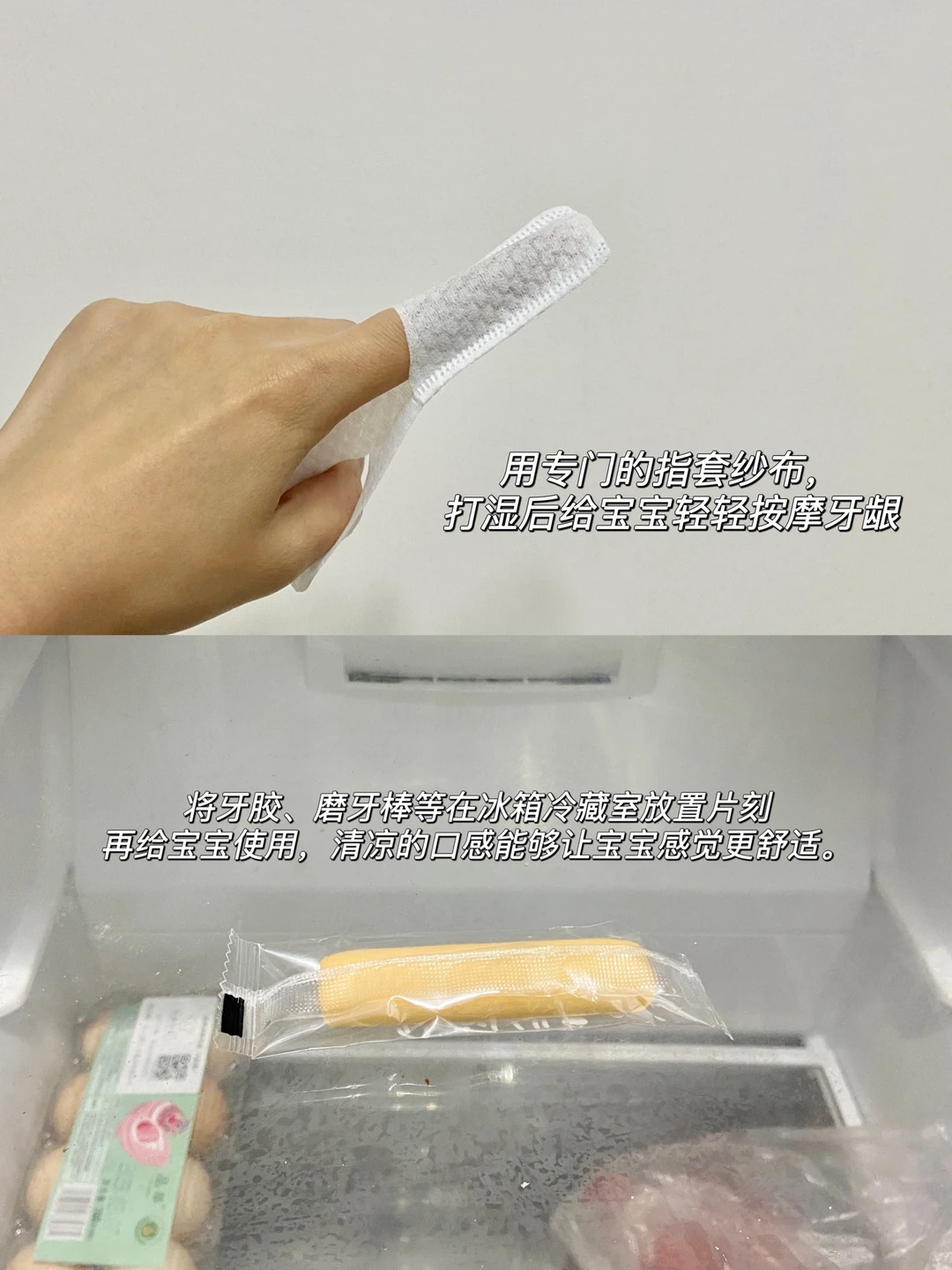 注意⚠️:是冷藏,不是冷冻!冷冻后过于冰凉的磨牙用品反而会冻伤宝宝的牙龈。