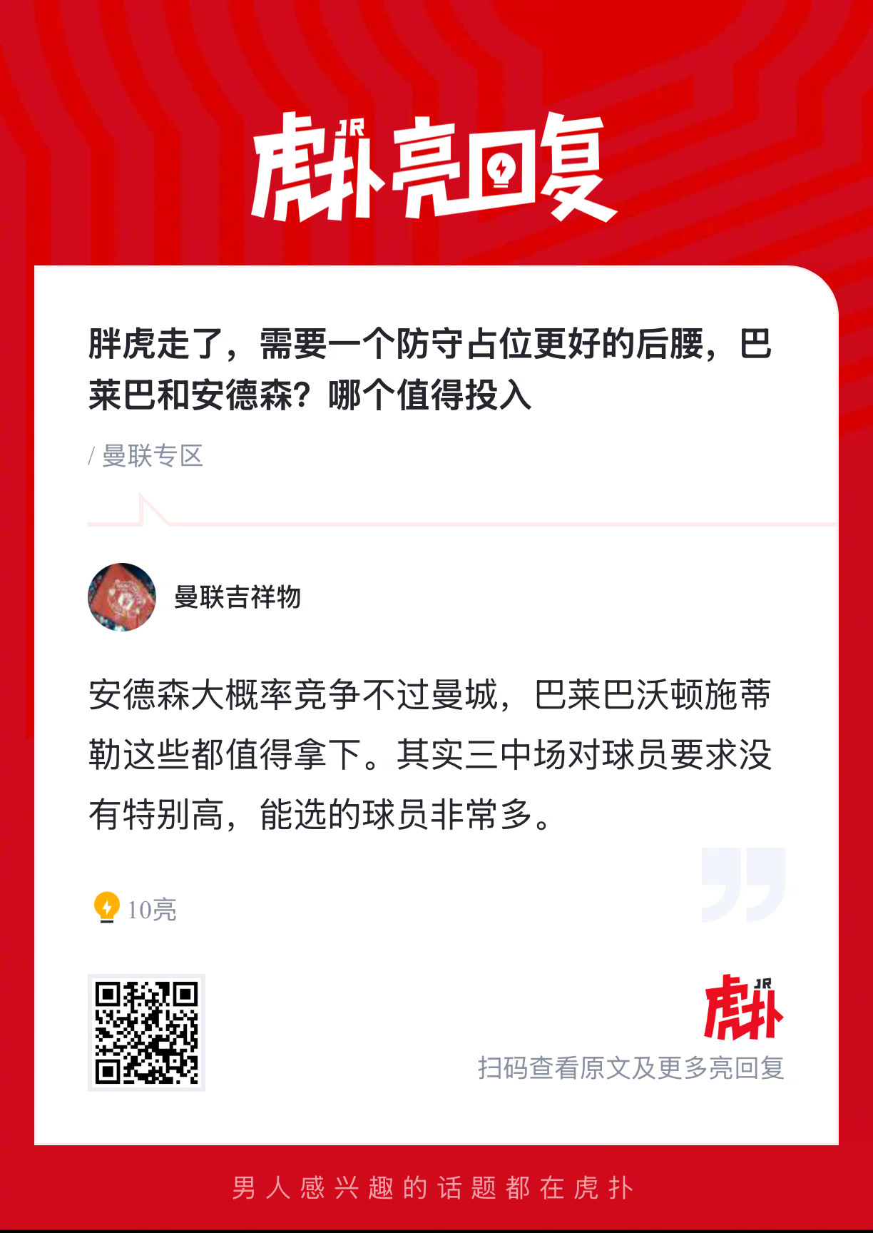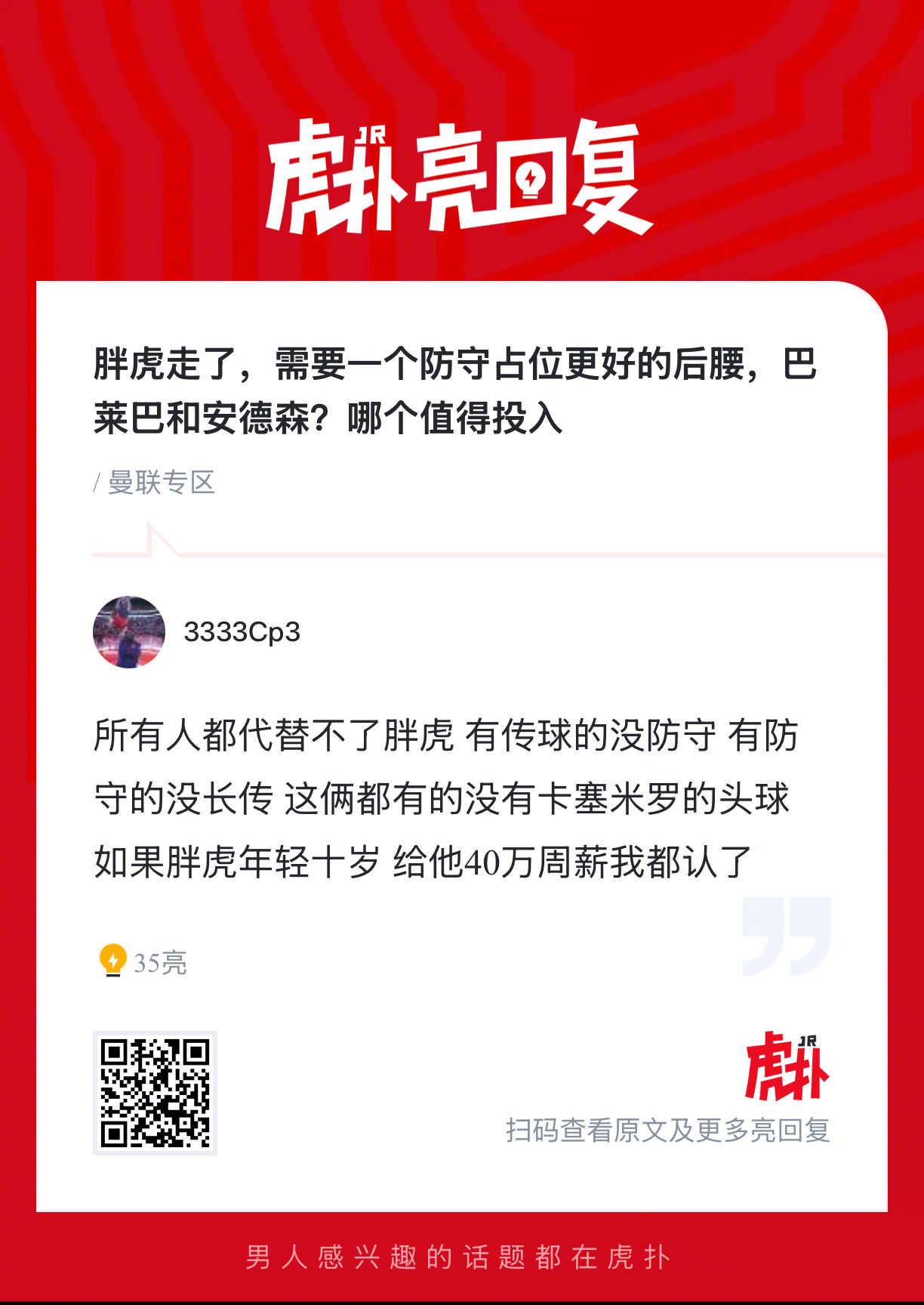 曼联球迷来说说:卡塞米罗离队后红魔需要一个防守占位更好的后腰,巴莱巴和安德森谁更