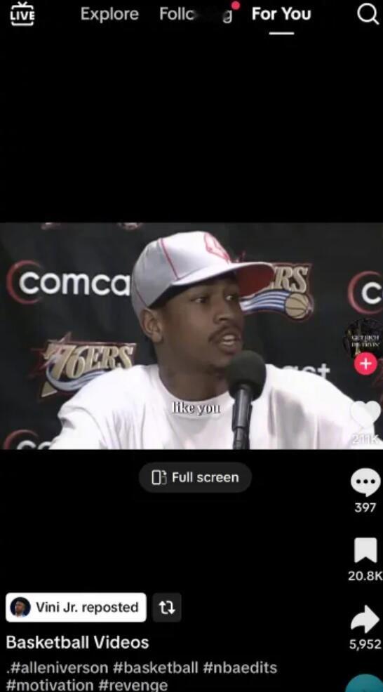 根据外网足球媒体账号“TouchlineX”消息,维尼修斯近日转发了一条NBA球星艾弗森的采访视频,疑似暗讽与皇马的续约问题。该媒体原文如下:维尼修斯转发了一条关于NBA传奇球星阿伦-艾弗森采访的TikTok视频,视频中艾弗森表示:“我是MVP,却仍要为交易流言而担忧。我也是普通人,不可能事事都赢。”此事发生之际,他正遭受严厉批评,甚至遭到皇家马德里球迷的嘘声,且关于他可能离队的转会传闻层出不穷。