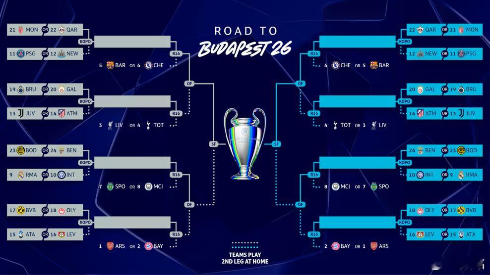 欧冠 欧冠附加赛抽签仪式1月30日星期五进行,届时晋级之路也就清晰了。