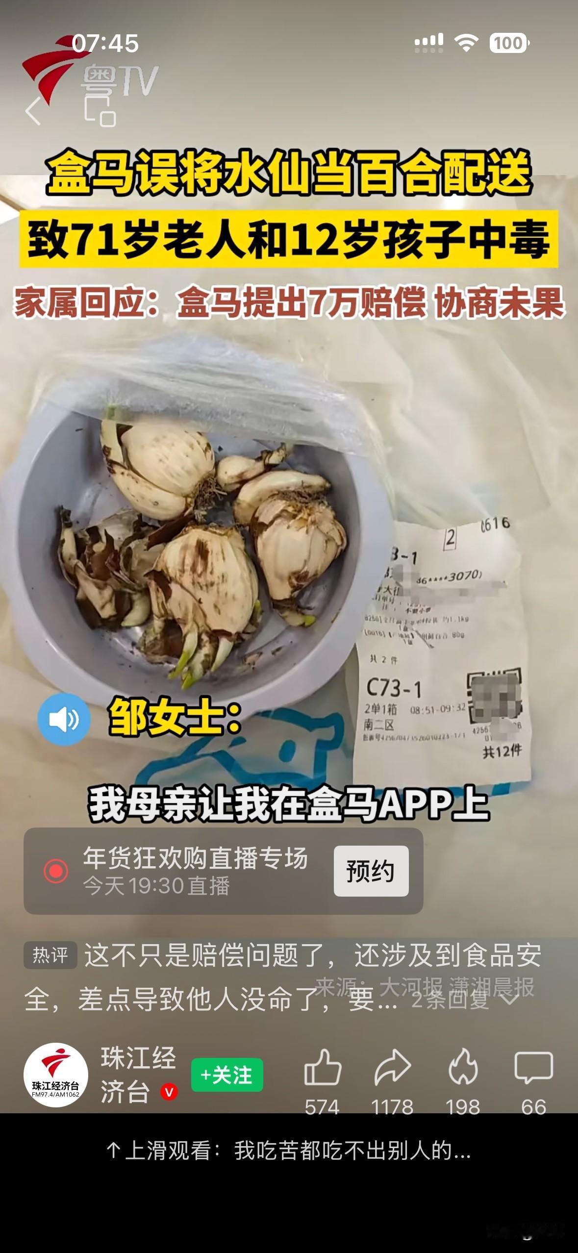 最近盒马的丑闻有点多啊! 才爆出蓝虾事件,现在居然把水仙当百合配送!! 盒马你是不是毒虾吃多了,瞎啊?!