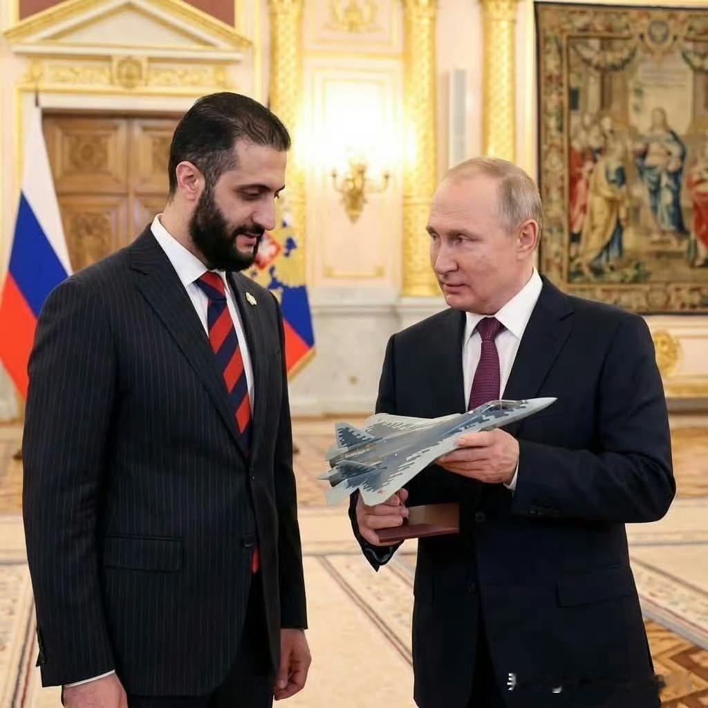 牢猪,它曾经瞄准过你。 普京在克里姆林宫向叙利亚临时政府总统朱拉尼介绍苏-57战斗机。 #叙利亚局势进展#