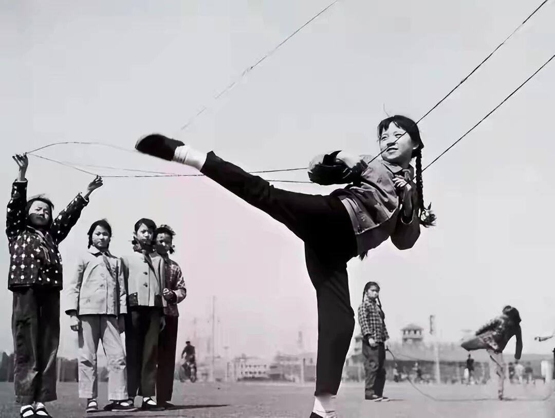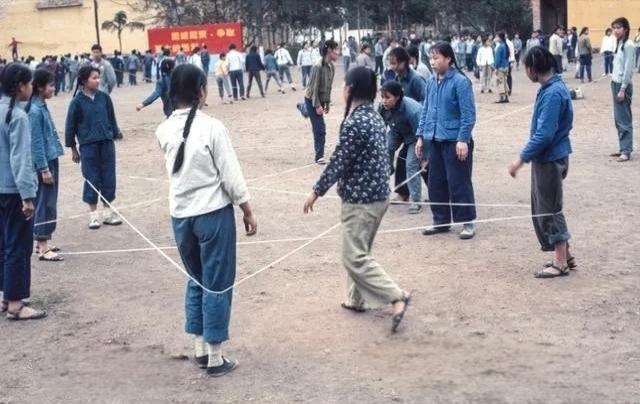 怀旧老照片共享我们小时候上学,在学校里一下课,总能看见女同学跳皮筋,而且边跳边嘴里念着:“二五六,二五七,二八二九三十一…”