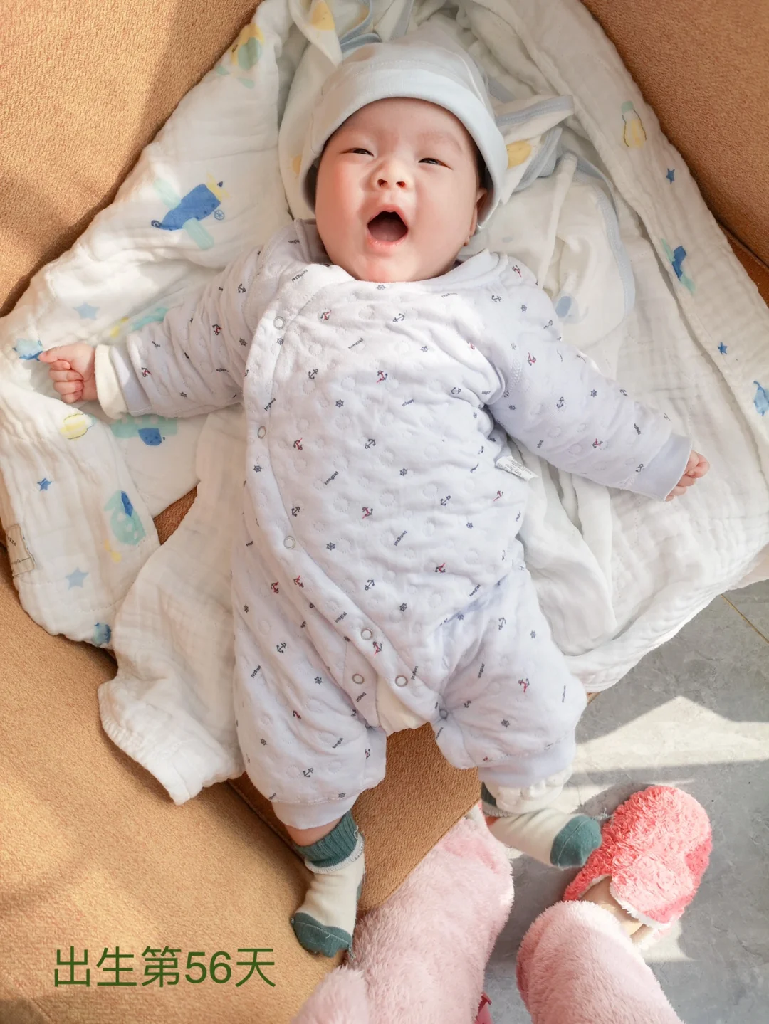 经历了二十多天反复感冒咳嗽后,你终于痊愈了。未满两月的你,在一次晚上吃完奶后突然对着我大笑。笑着眯成缝的眼睛、舔着舌头张大的嘴巴,刻在我脑里好久好久。不久后,情绪表达会被你运用自如,那一刻,你不会记得,而我不会忘了。