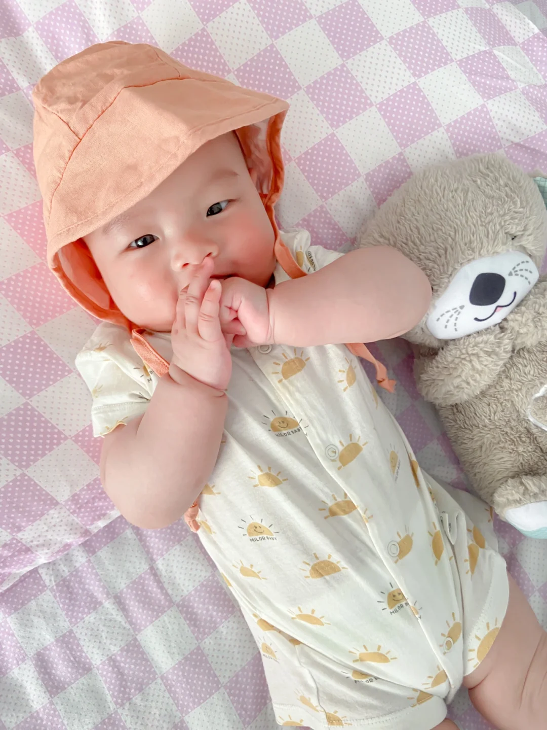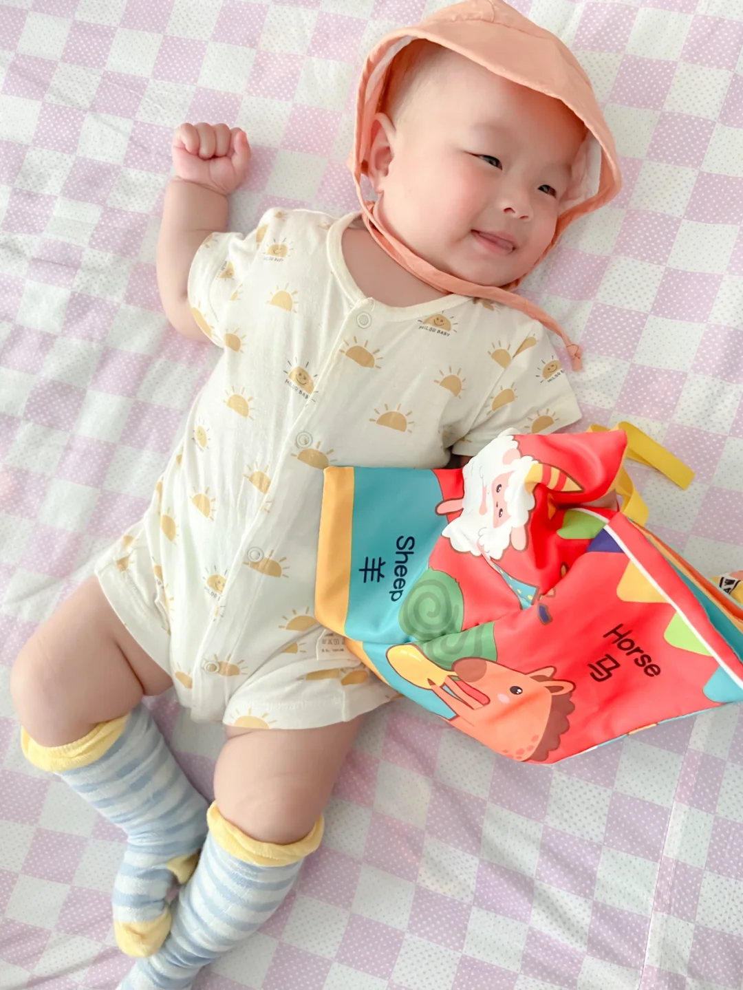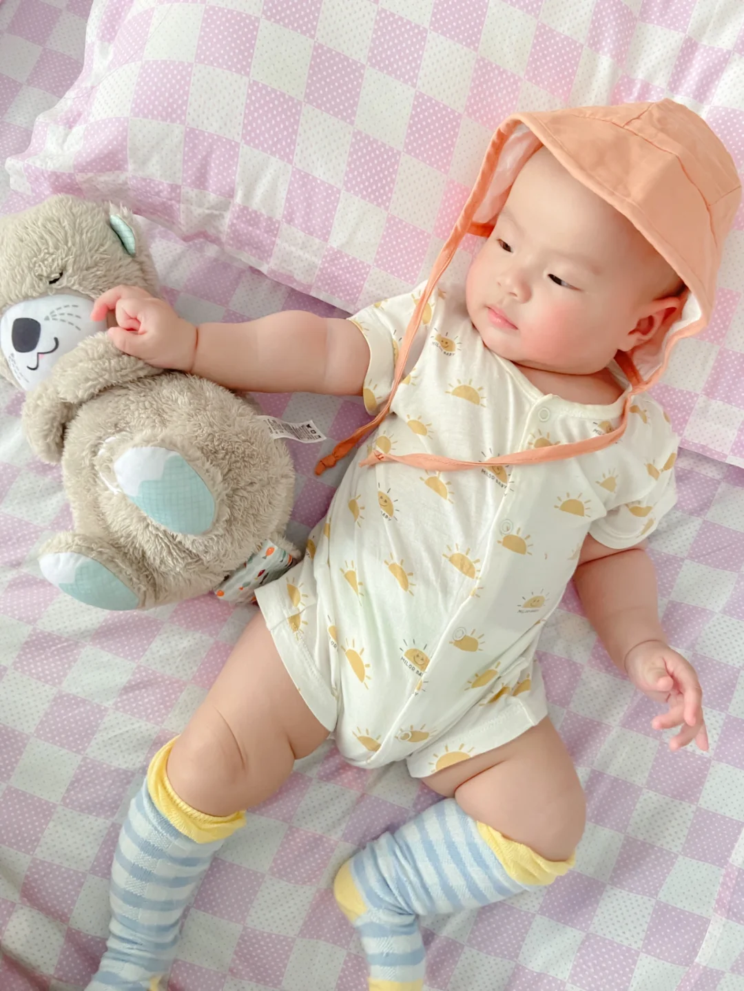 最近几天成都气温又飙到了30,一秒入夏。感冒才好的火娃小树苗又开始露大腿啦,但经不起外婆念叨,只能给他穿上长袜、戴上帽子。今天的配色是一整个夏天的感觉,配上肉嘟嘟的小树苗,真想一口咬下去。[吐舌头H][吐舌头H][吐舌头H]