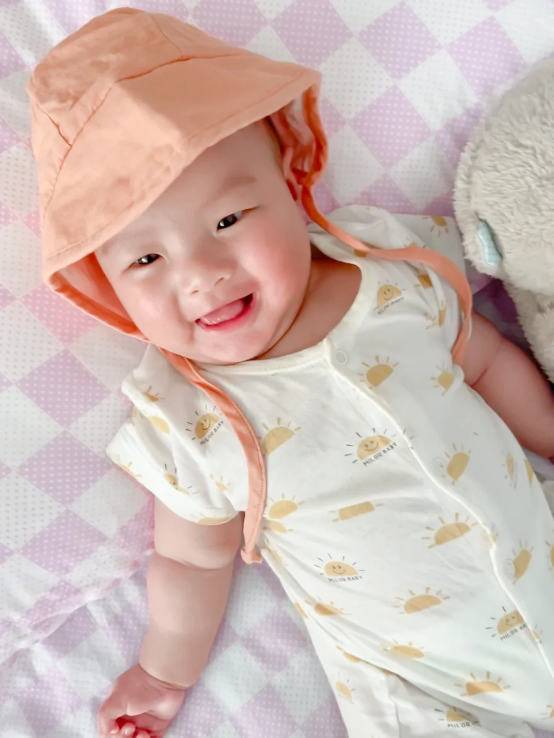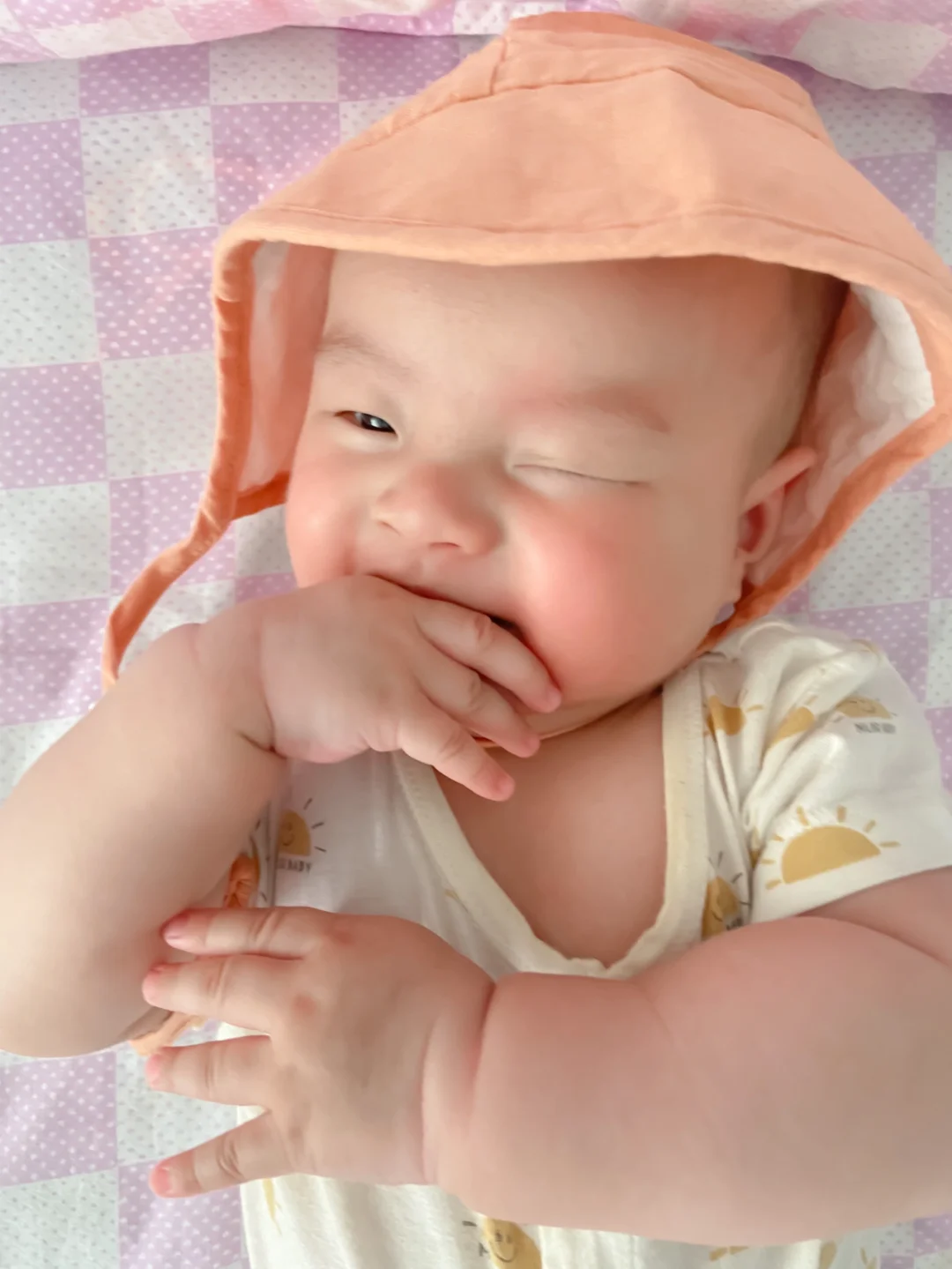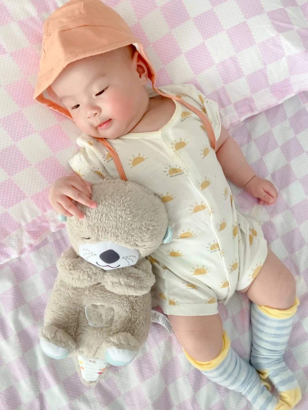 最近几天成都气温又飙到了30,一秒入夏。感冒才好的火娃小树苗又开始露大腿啦,但经不起外婆念叨,只能给他穿上长袜、戴上帽子。今天的配色是一整个夏天的感觉,配上肉嘟嘟的小树苗,真想一口咬下去。[吐舌头H][吐舌头H][吐舌头H]