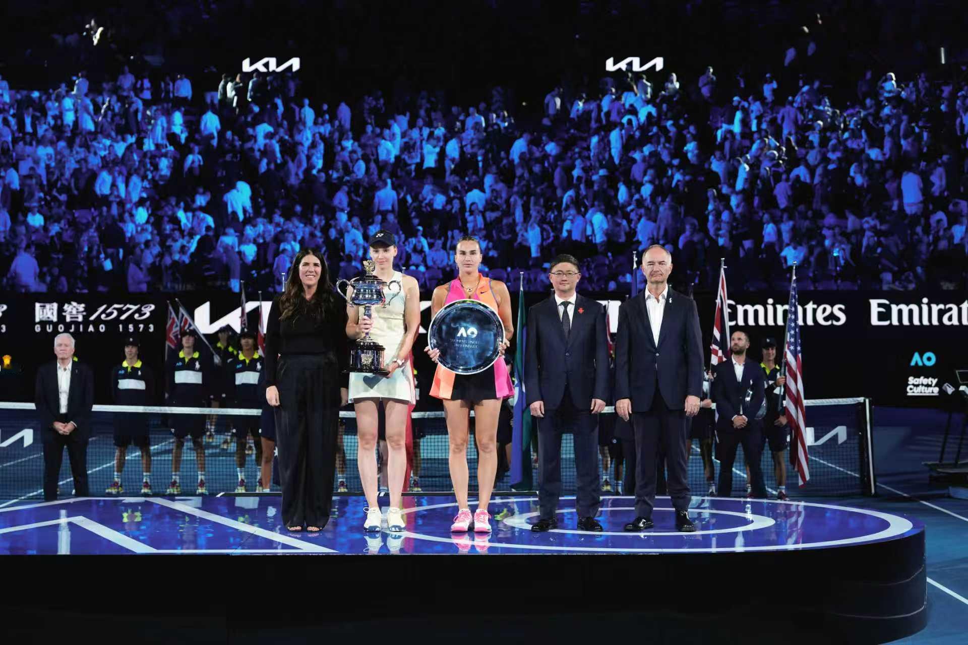 澳网2026 女单决赛落下帷幕,莱巴金娜力克萨巴伦卡,大比分2-1(6-4/4-