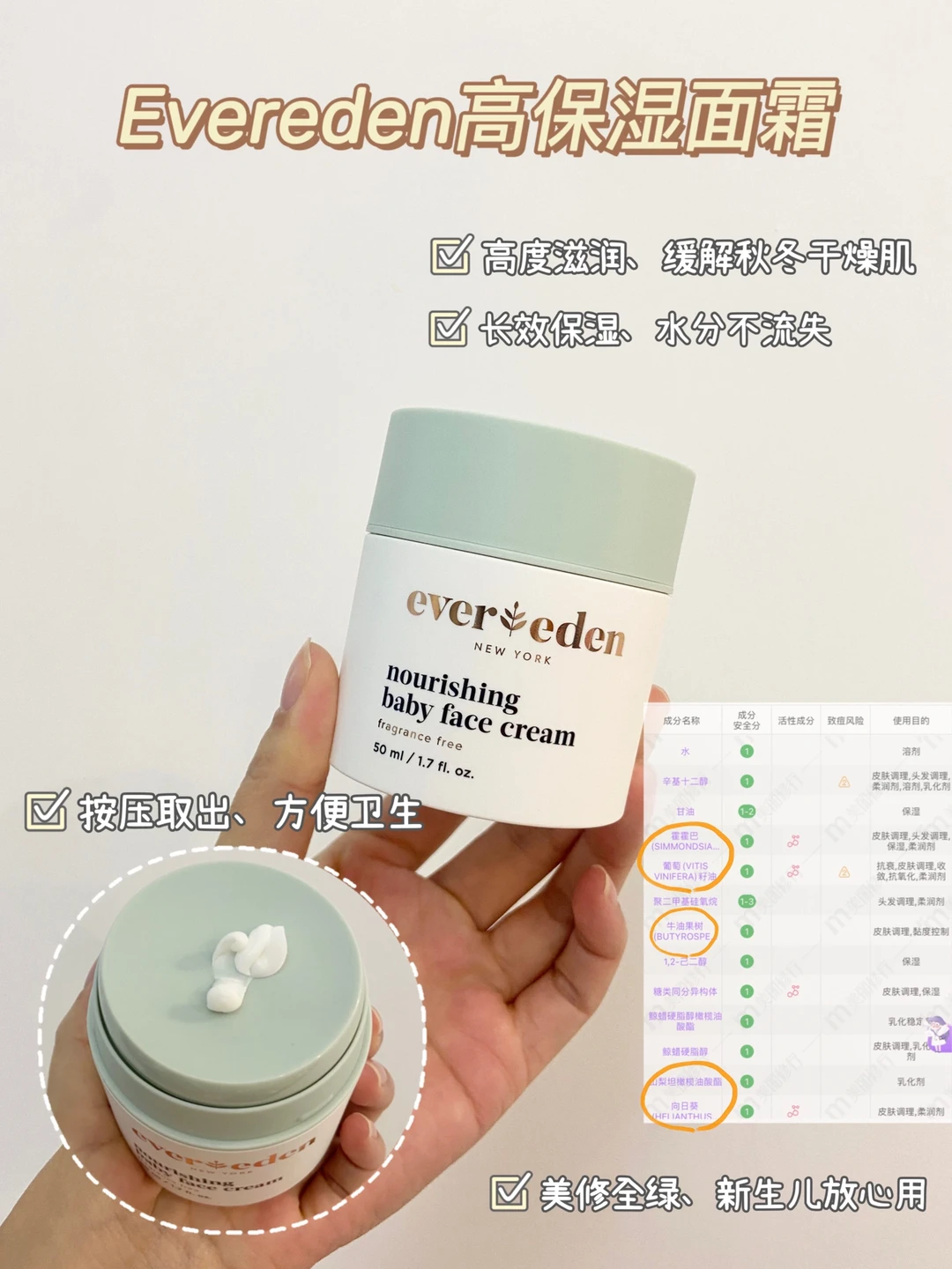 给姐妹们分享我家一直在用的Evereden高保湿面霜,是由皮肤科👩‍⚕️妈妈研发的,植物基底,没有香精/酒精/有害防腐剂这些刺激的东西。新生儿可以放心用!🍃