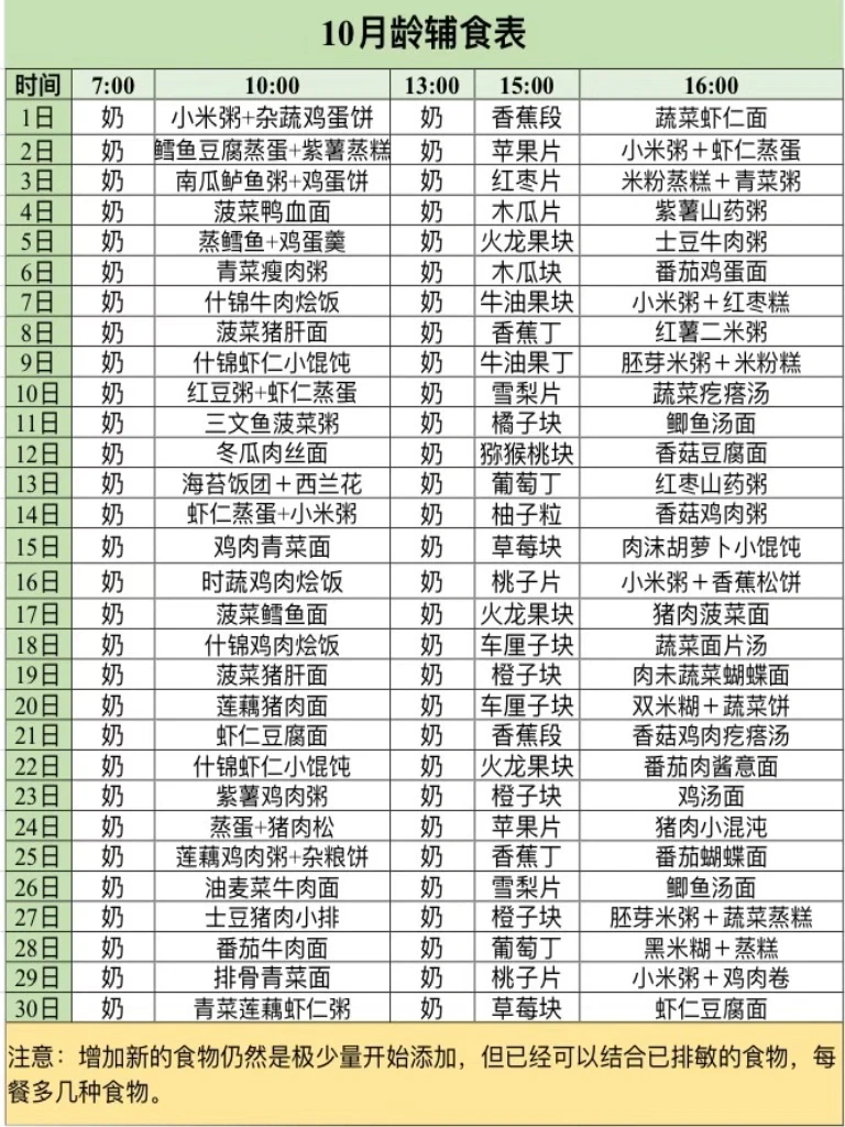 ⭕️每样新的食物3天排敏,可以2-3种低致敏食物一起排,高致敏食物刚开始极少量添加,注意观察有无过敏反应,也可以和已经排过敏的食物一起加。新添加食物都在上午吃完,方便观察有无过敏反应,并能及时采取措施。