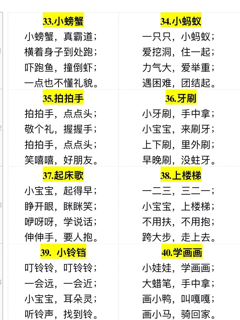 给大家分享40首顺口溜,每天跟宝宝多念多互动,宝宝越来越聪明、说话早。