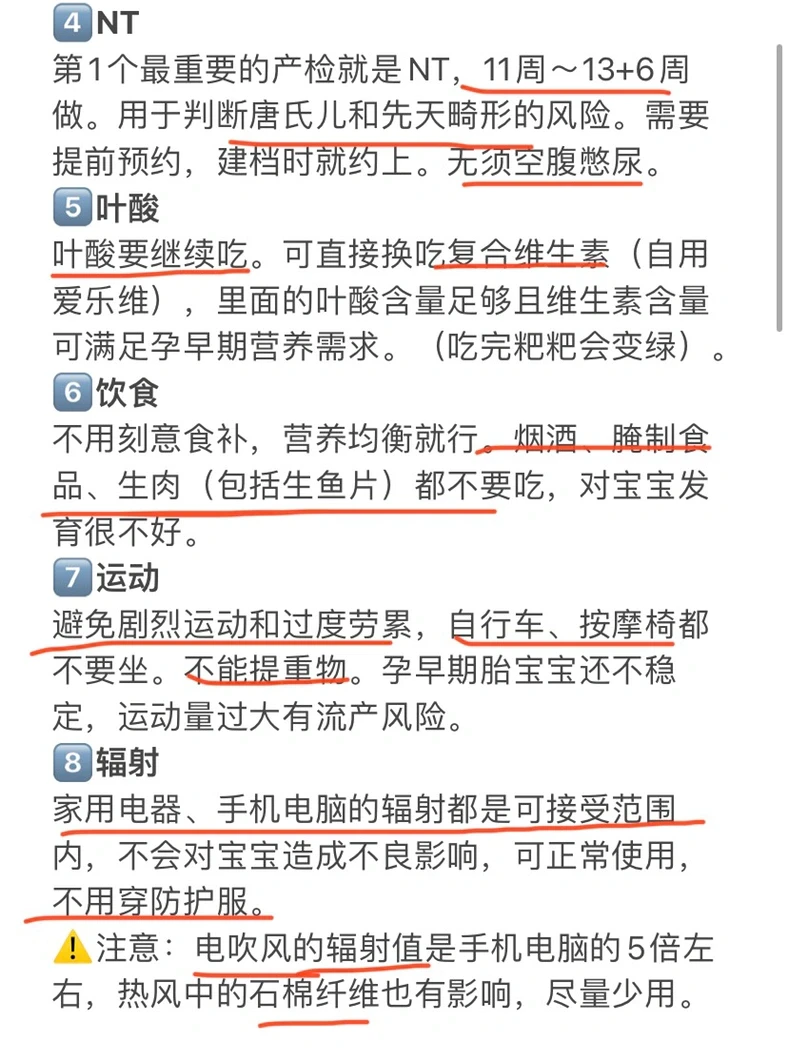 第1个最重要的产检就是NT,11周~13+6周做。用于判断唐氏儿和先天畸形的风险。需要提前预约,建档时就约上。无须空腹憋尿。