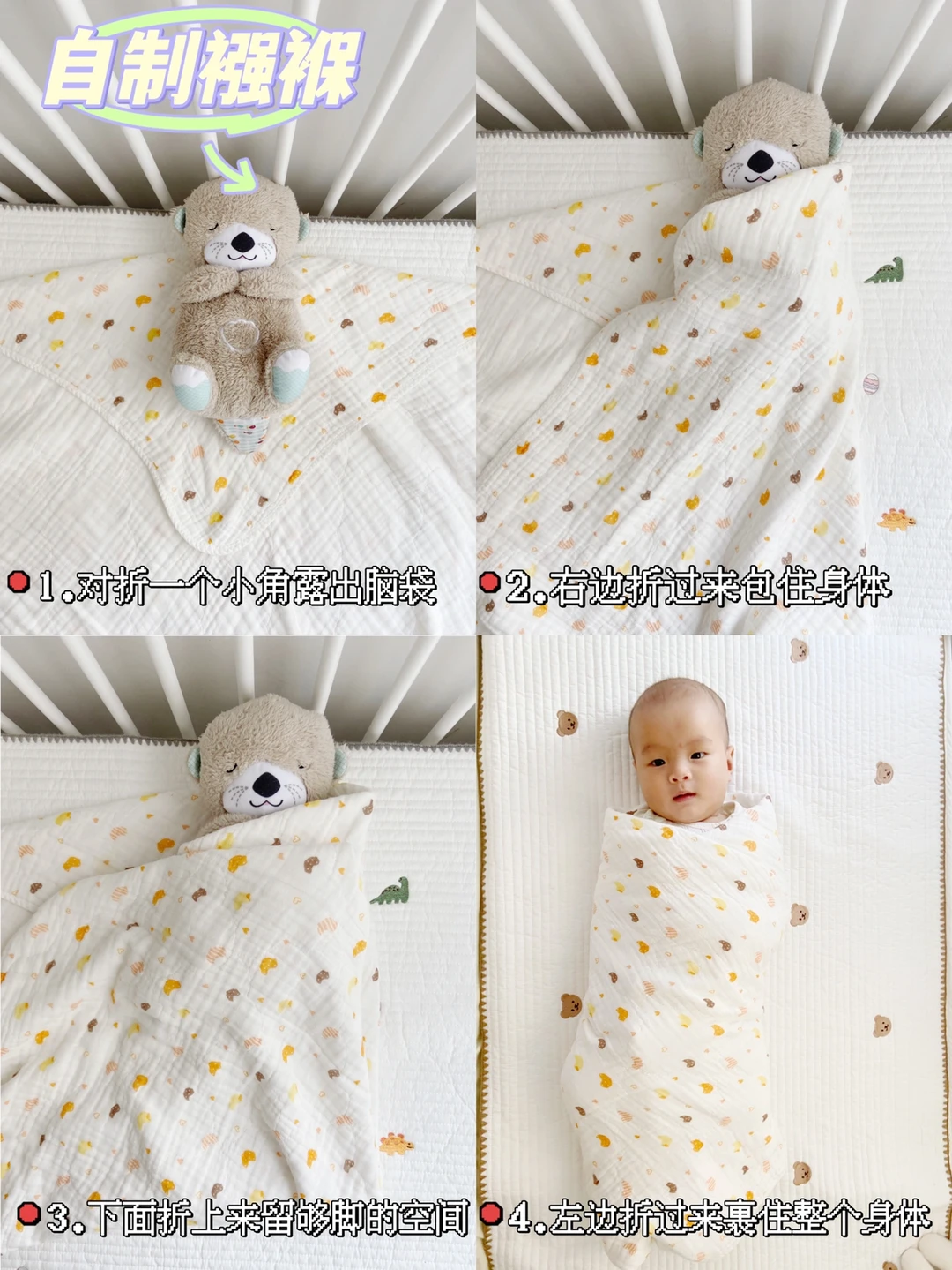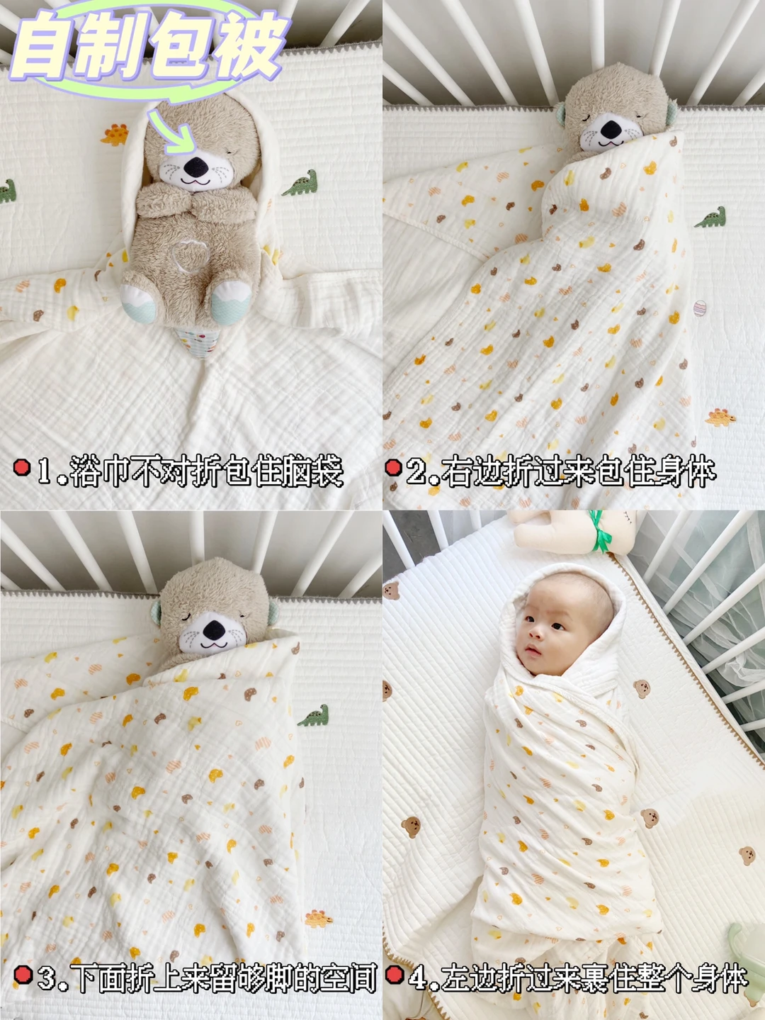 🌟🌟纱布浴巾不用说肯定有,跟我学,小月龄可以变成薄包被,晚上还当襁褓裹着睡,不要太爽。