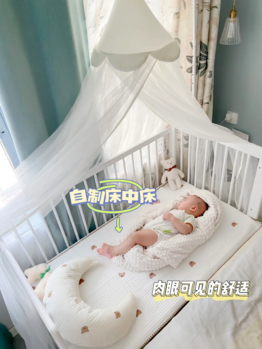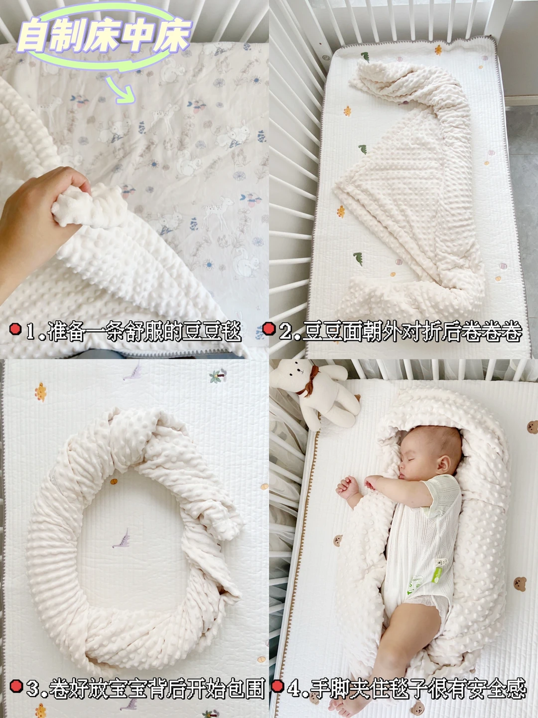 为培养宝宝良好的睡眠习惯,同时防止与大人同床同被发生被捂被压危险,尽早让宝宝独立睡小床,但刚开始一般都会没有安全感,床中床、裹襁褓都可以让宝宝感觉安全,但是用的时间不会太久,没有必要花大价钱购入,可以自制。宝宝要买的东西真的非常多,咱们就地取材、一物多用,能省一点是一点吧。