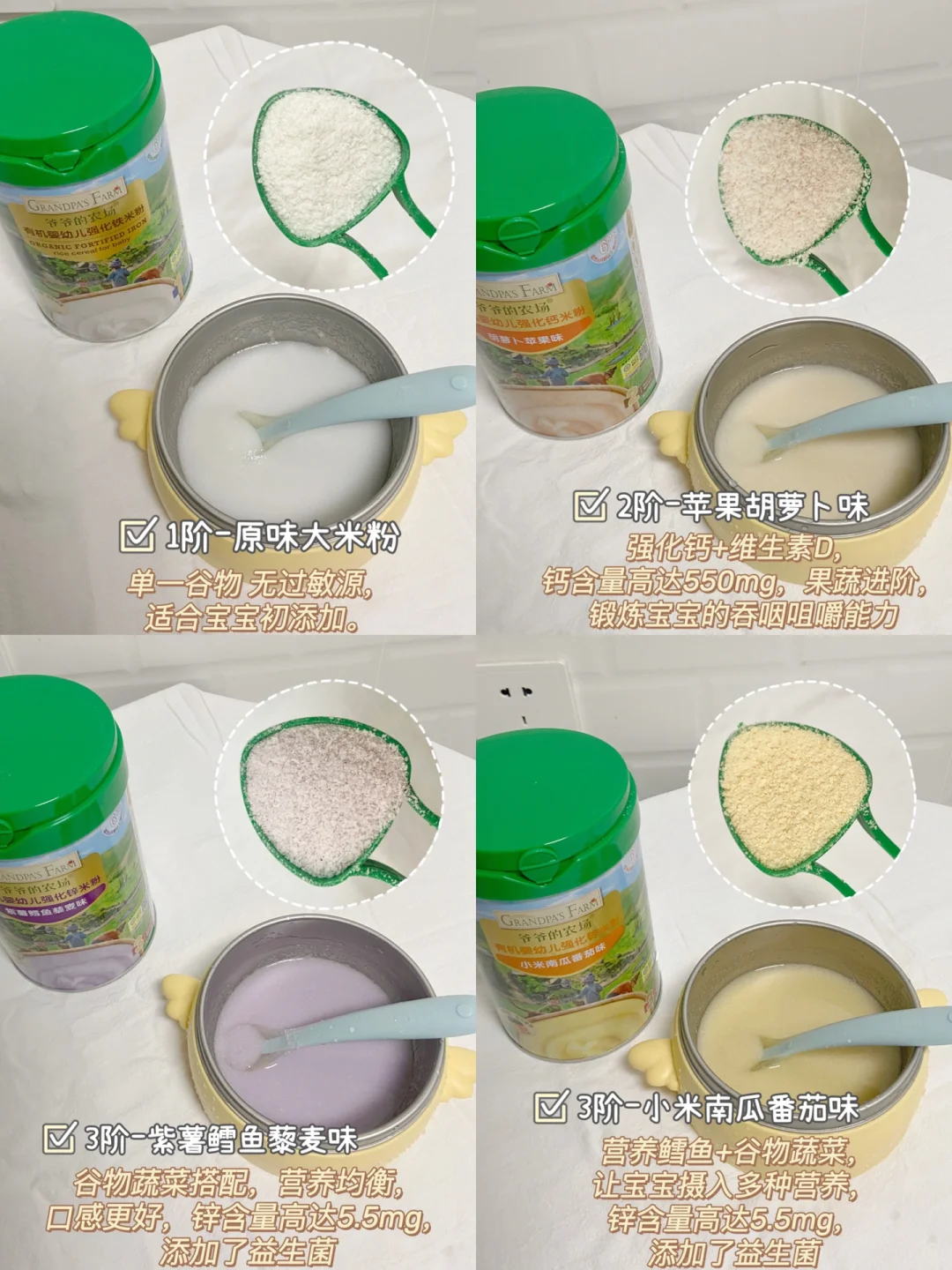 此外,根据宝宝成长发育不同阶段的需求,还有苹果胡萝卜味、小米南瓜番茄味、紫薯鳕鱼藜麦味等,阶段性强化铁、钙、锌等营养素。初添加宝宝可以吃原味大米粉,单一谷物成分,没有过敏源,适合刚添加辅食的宝宝,等宝宝适应原味后可以吃苹果胡萝卜味,强化钙+维生素D,钙含量高达550mg,到了8月龄左右就可以吃小米南瓜番茄味和紫薯鳕鱼藜麦味,谷蔬搭配鳕鱼,锌含量足足有5.5mg,还添加了益生菌,营养均衡,口感更好。