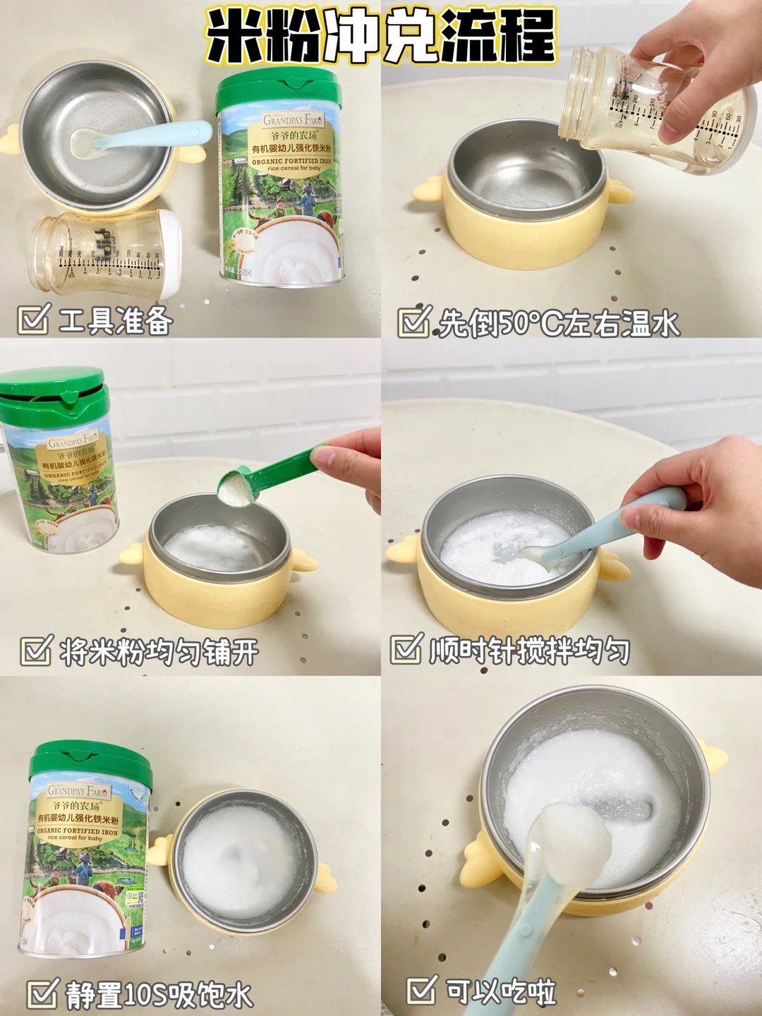 以40ml水、5g米粉为参考,初添加水多一些,逐步越来越稠。水温50度左右,先放水,再放米粉,米粉均匀铺开,勺子沿一个方向搅拌,静置10s吸饱水,就可以吃啦。