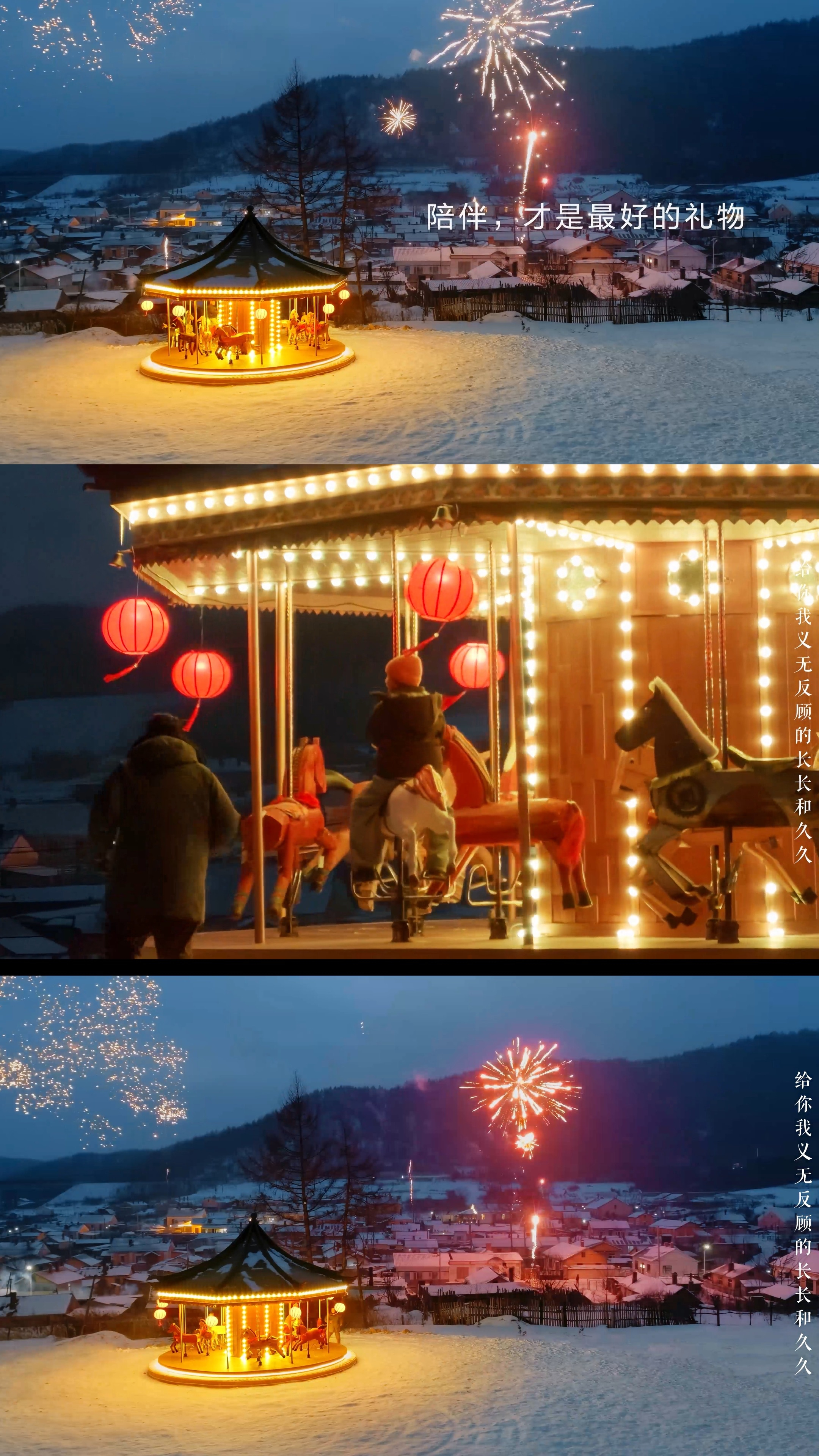 电影里张国强饰演的父亲春节返乡,为了孩子心心念念的“旋转木马”,硬是带着老友们在冰天雪地里用废铁“手搓”了一座。结局的反转太好哭了:原本以为的机器故障,竟是儿子为了留住父亲在家而故意搞的“温情破坏”。当两人在烟火下合力推动木马时,我终于理解了那句 陪伴才是最好的礼物 。