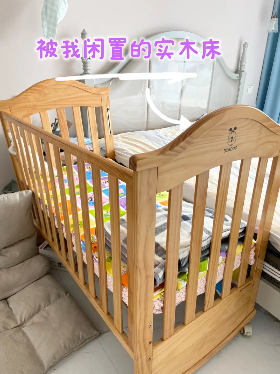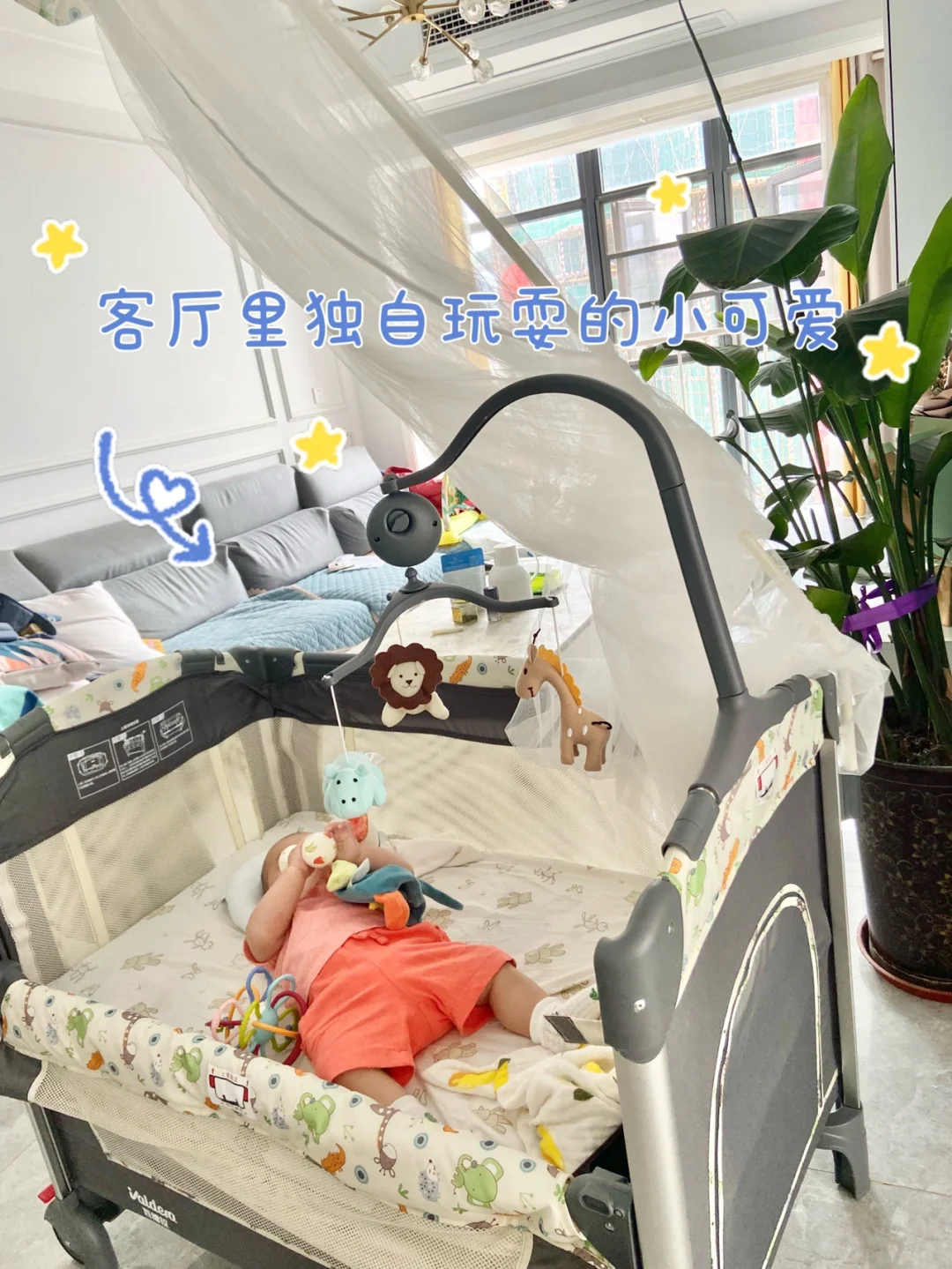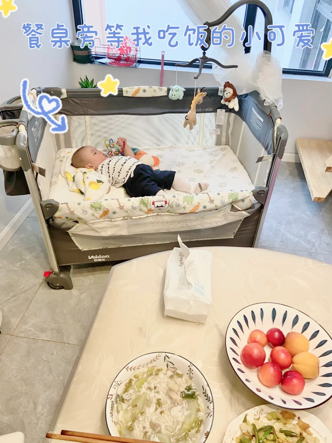 万万没想到最近居然成了我解放双手的神器,晚上拼接大床睡觉,白天就被我当婴儿车推来推去!😅😅吃饭把床推到餐桌旁,我能看宝宝、宝宝也能看我,躺上去自己玩儿,我可以安心吃饭,带过小月龄宝宝的都知道这有多重要🤱。沙发太软不适合他,把床推到客厅,让他在上面趴卧、抬头,我也可以做自己的事,简直不要太爽。[哇R][哇R][哇R]