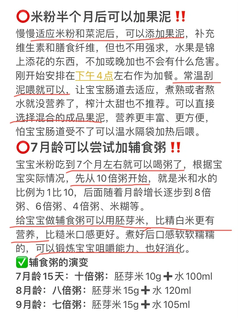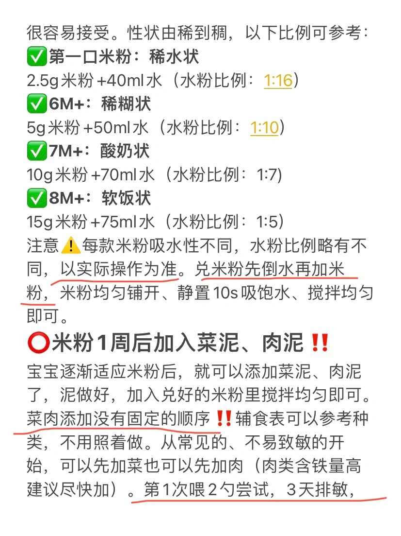 2️⃣吃米粉1周后加菜泥肉泥‼️