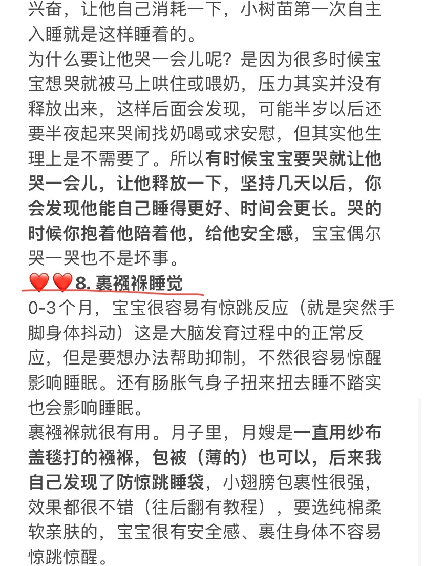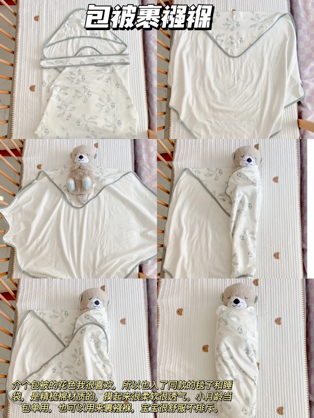 裹襁褓就很有用。月子里,月嫂是一直用纱布盖毯打的襁褓,包被(薄的)也可以,后来我自己发现了防惊跳睡袋,小翅膀包裹性很强,效果都很不错(往后翻有教程),要选纯棉柔软亲肤的,宝宝很有安全感、裹住身体不容易惊跳惊醒。