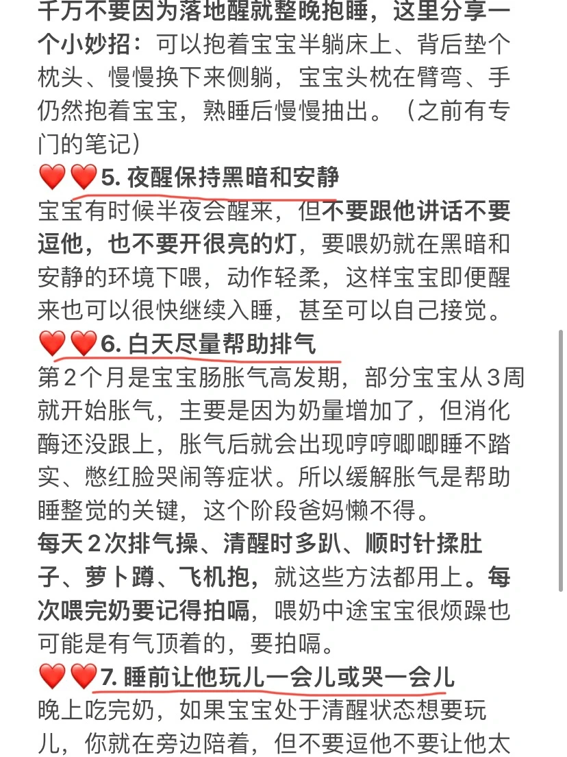 第2个月是宝宝肠胀气高发期,部分宝宝从3周就开始胀气。所以缓解胀气是帮助睡整觉的关键,这个阶段爸妈懒不得。每天2次排气操、清醒时多趴、顺时针揉肚子、萝卜蹲、飞机抱,就这些方法都用上。