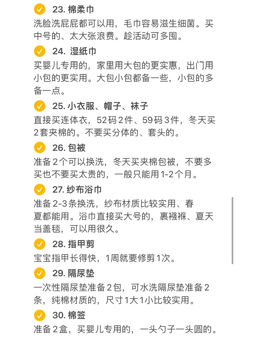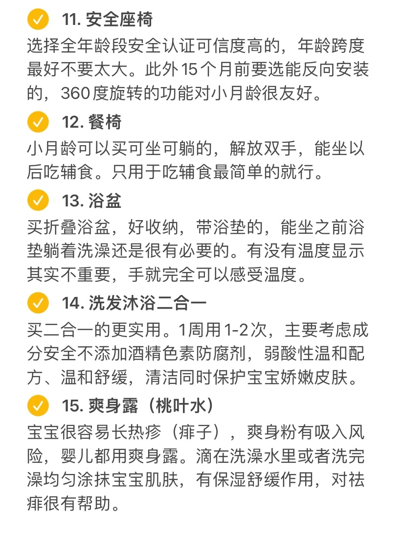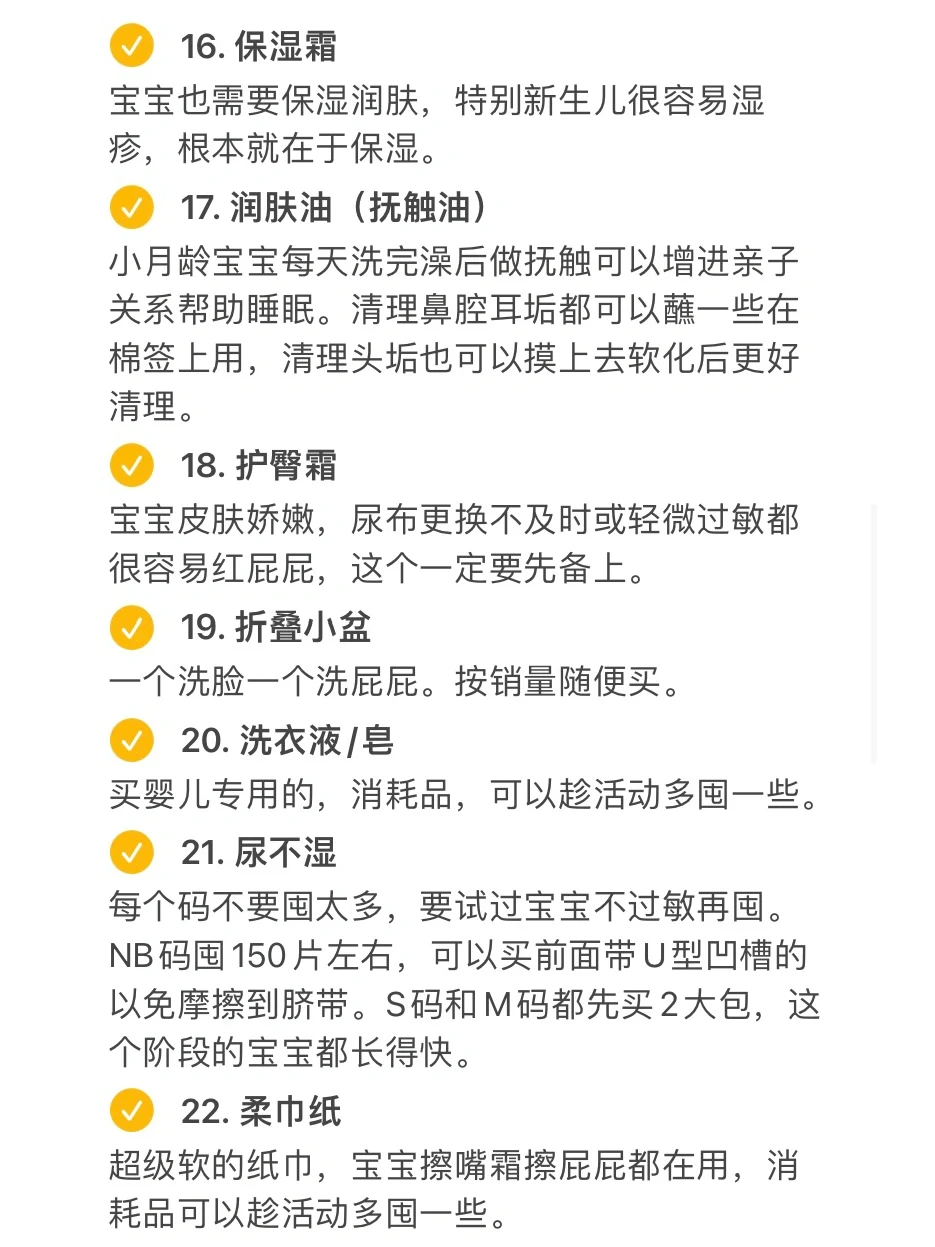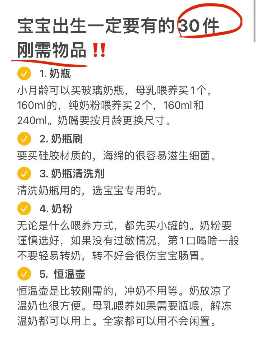 产后1年半,整理了宝宝出生要用到的30件刚需物品,主要有: