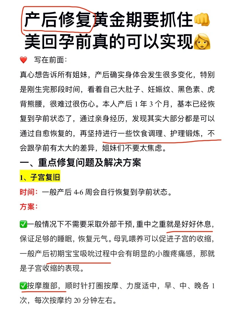 ⭕️ 一、产后重点修复问题及解决方案