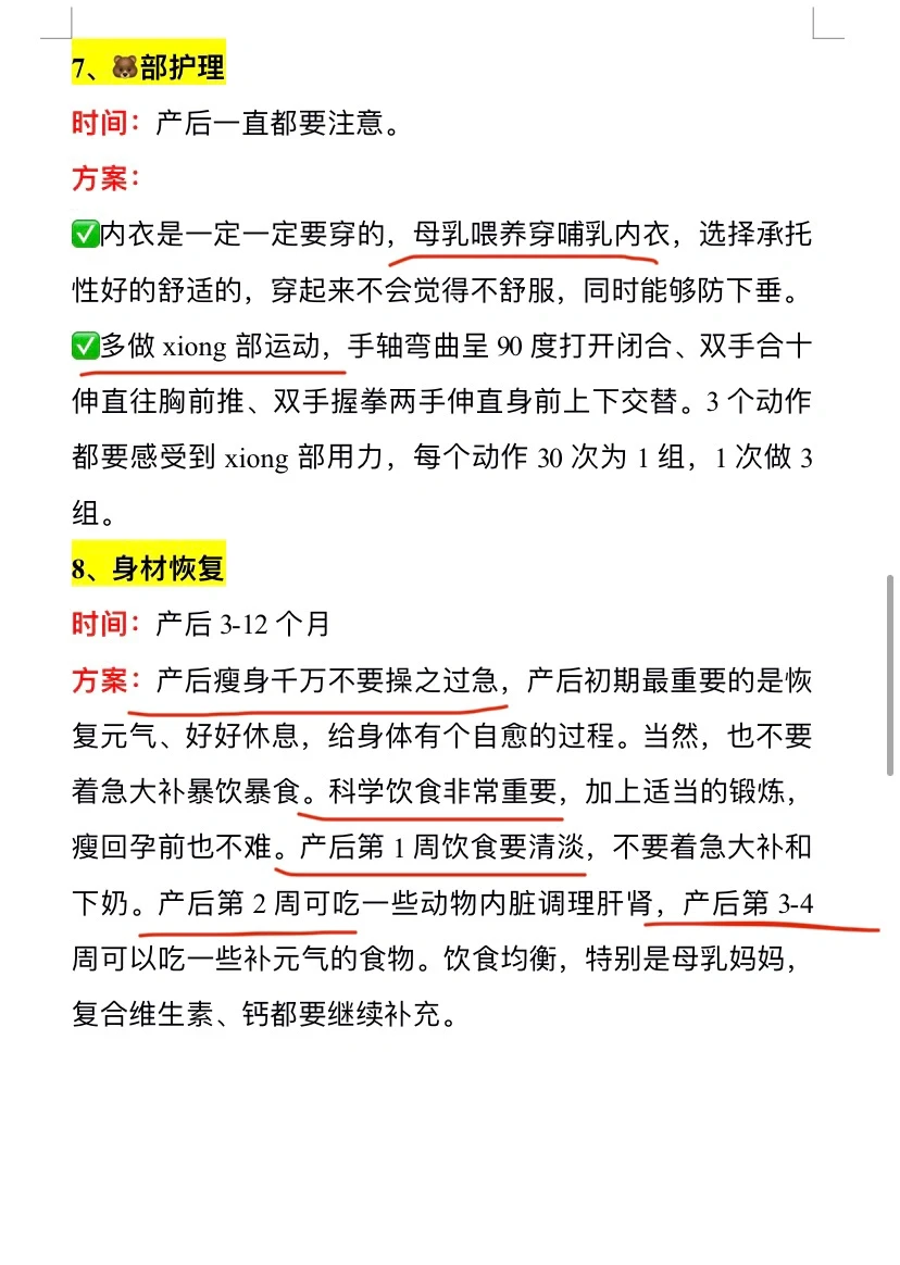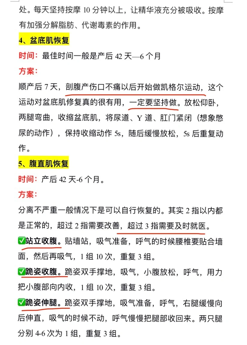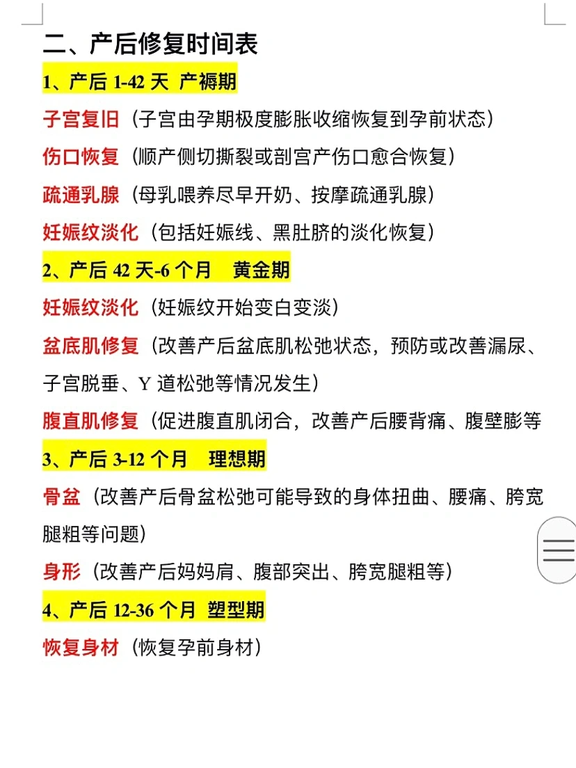 ⭕️产后修复时间表: