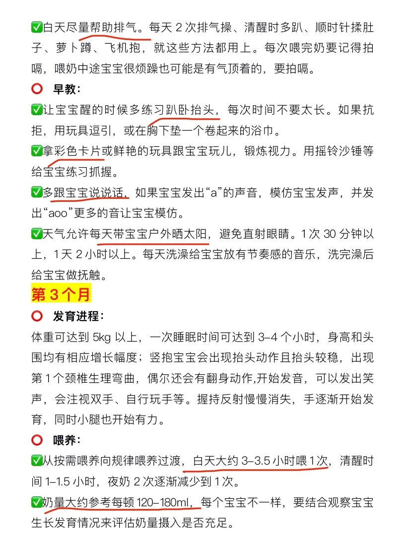 对于新手爸妈来说,宝宝前3个月是比较需要适应和注意的阶段,基本把这3个月带好,后面就会轻松很多。这篇整理了0-3个月宝宝发育进程、喂养、睡眠、护理、早教等要点,都是我之前学习和实践出来的,尤其对自己带娃的爸妈来说真的很实用。