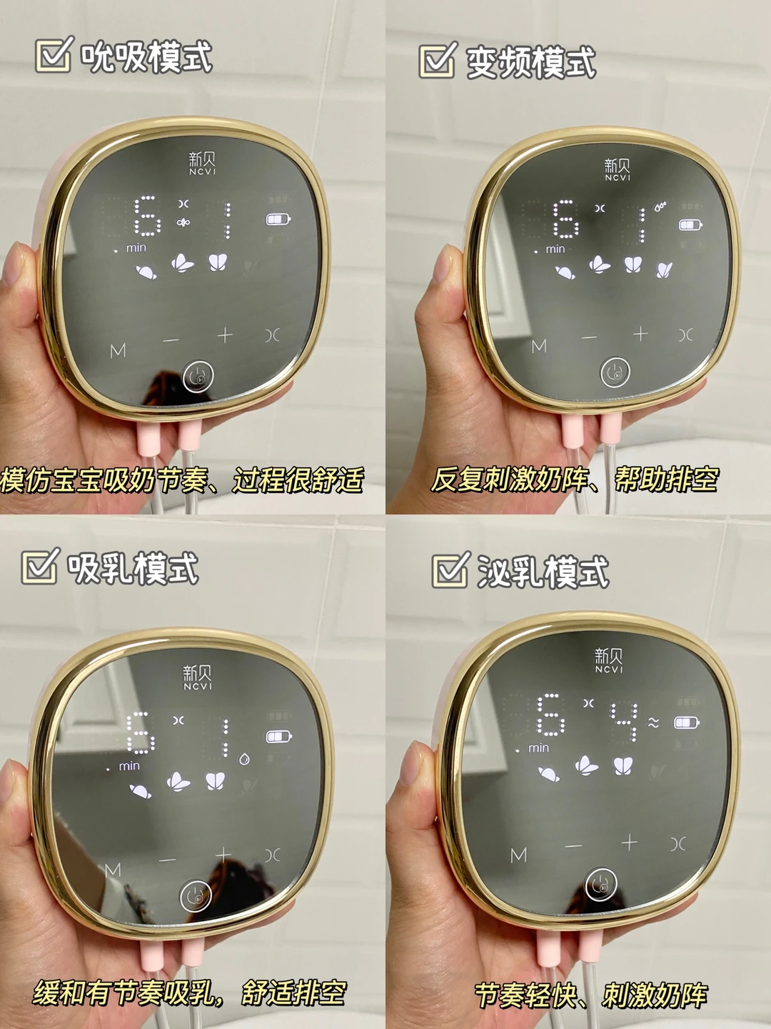 1️⃣奶水不够需要追奶,多喝水,小小口喝,记住每3个小时左右排空一次,宝宝先吸,再用吸奶器排空。吸奶器用电动双边的比较省时省力,吸奶之前可以热毛巾热敷,先用泌乳模式刺激奶阵,等有奶滴下来时切换吸乳模式吸奶,最后再用变频模式帮助排空。自用新贝电动双边吸奶器,吸起来一点也不痛,有4个模式9个档位可选,开奶、追奶、堵奶都可以用到,调到自己适合的档位后吸奶效率很高。