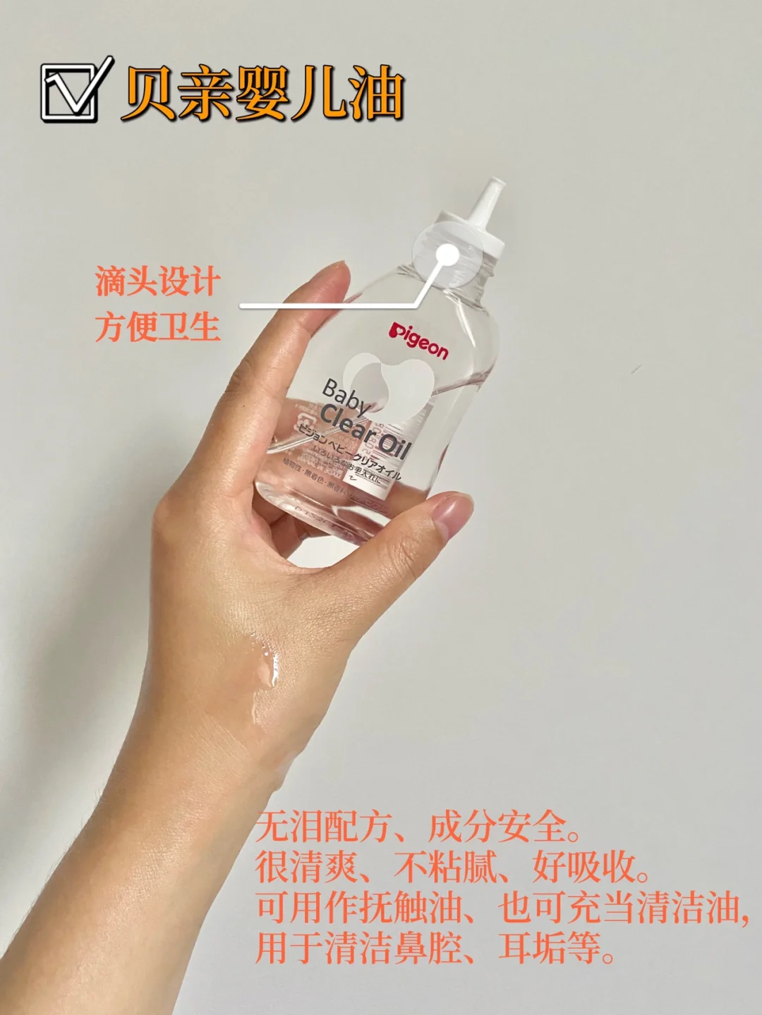 🌟抚触油:优先选择清爽、好吸收的、性价比高的,每天给宝宝做抚触,有利于增进亲子关系。还可用作清洁油,给宝宝清理耳垢、鼻腔等。