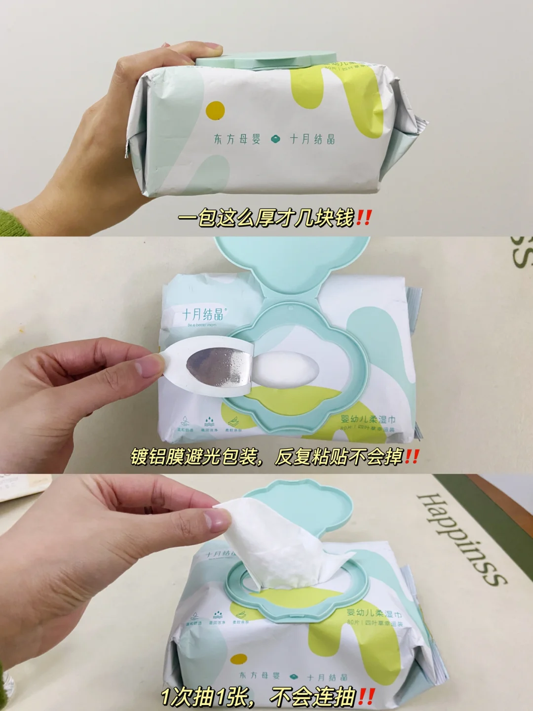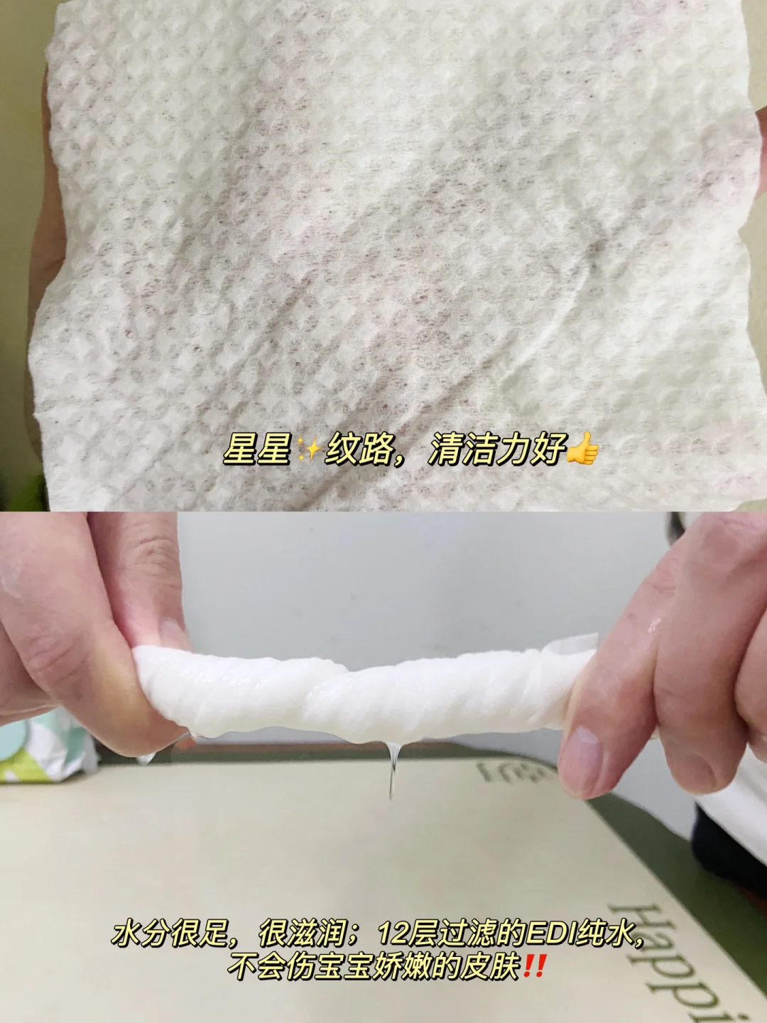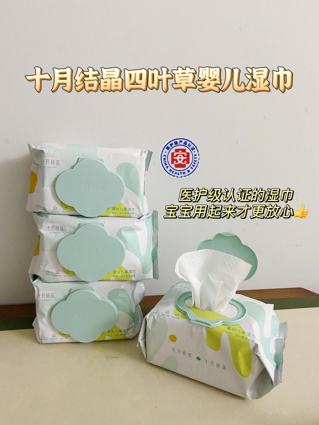 可以理解为沾了水的小毛巾。宝宝的湿纸巾要用宝宝专用的,可以入口的,🏥没有在家那么方便,湿纸巾可以洗脸洗手擦嘴擦屁屁,很实用,冬天沾热水就不会冰。我选的十月结晶四叶草婴儿湿巾,很厚实、很柔软、质感很好。添加了维E护肤精华,给宝宝洗脸也不会紧绷。水分很足,且是12层净化处理的EDI纯水,滋润不伤皮肤。很爱。