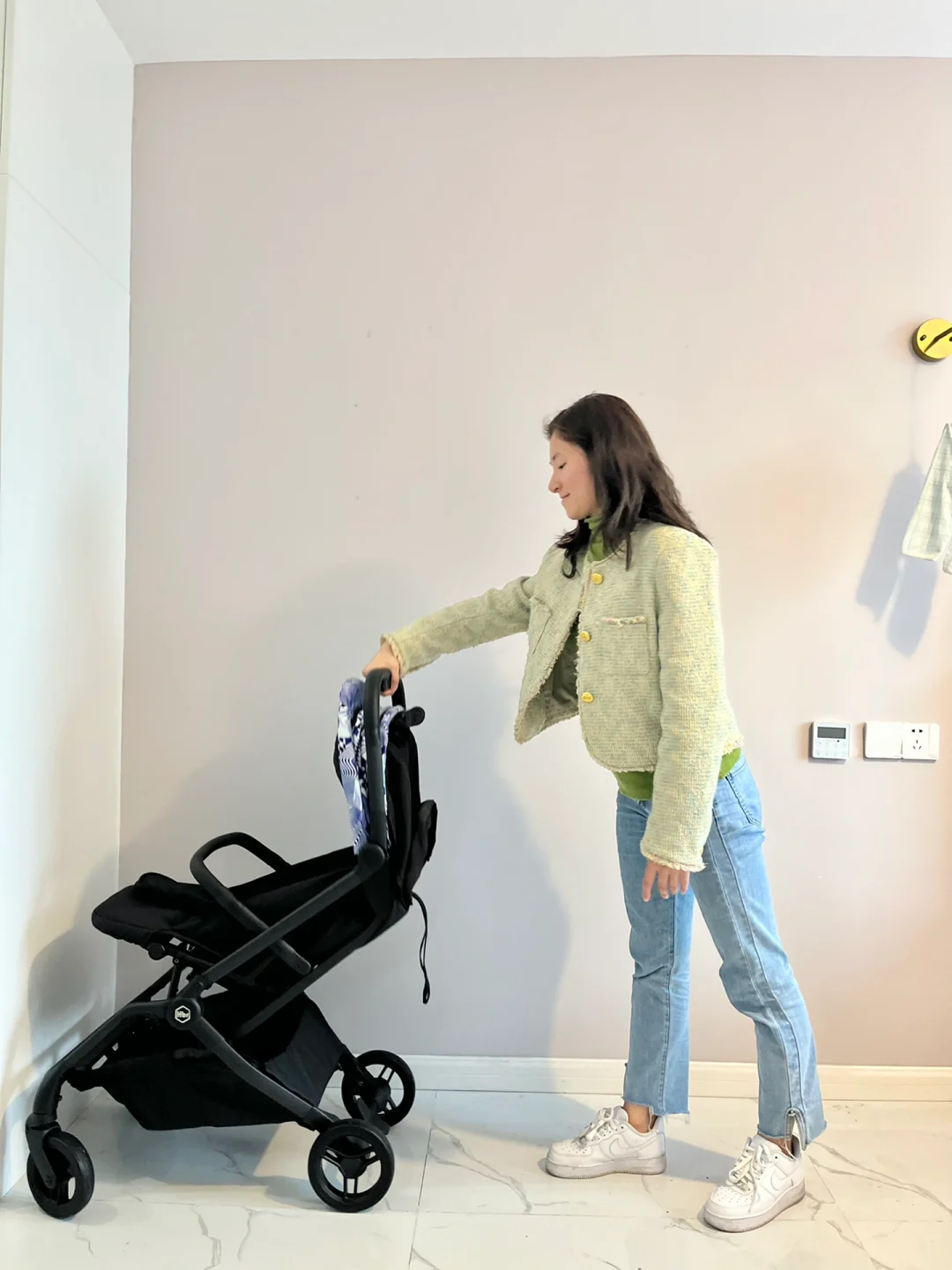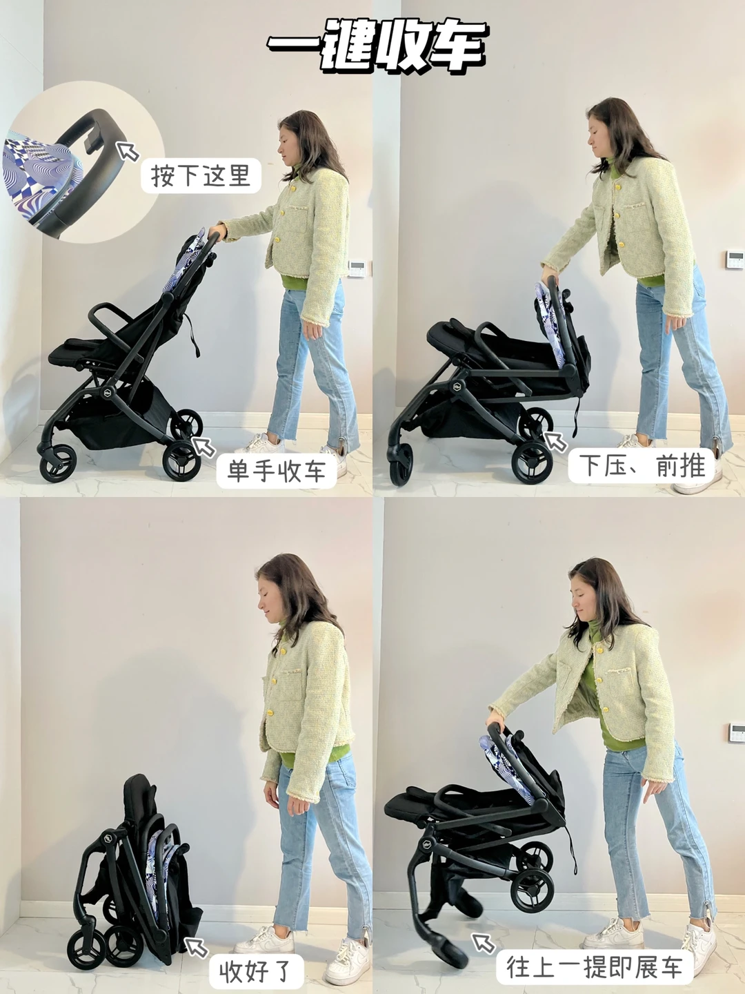 自己带娃出门,上下车的时候需要收车展车还要抱娃,收车容易很有必要。这台就真正实现了一键收车,只需要按下按钮,往前一推就自动收起来了,展车也只需要往上一提就可以了。