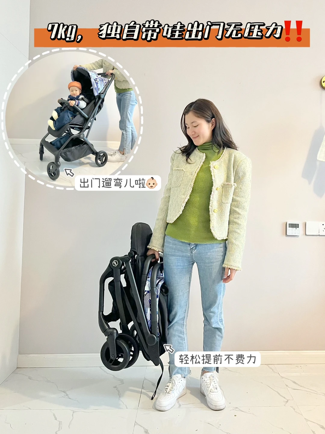 便携性是真的强,只有7kg,我一手提车一手抱娃没问题,特别是出门的时候放进后备箱很轻松。折叠以后体积很小,放进后备箱完全不占位置,座位上也随便塞,上飞机不用托运。
