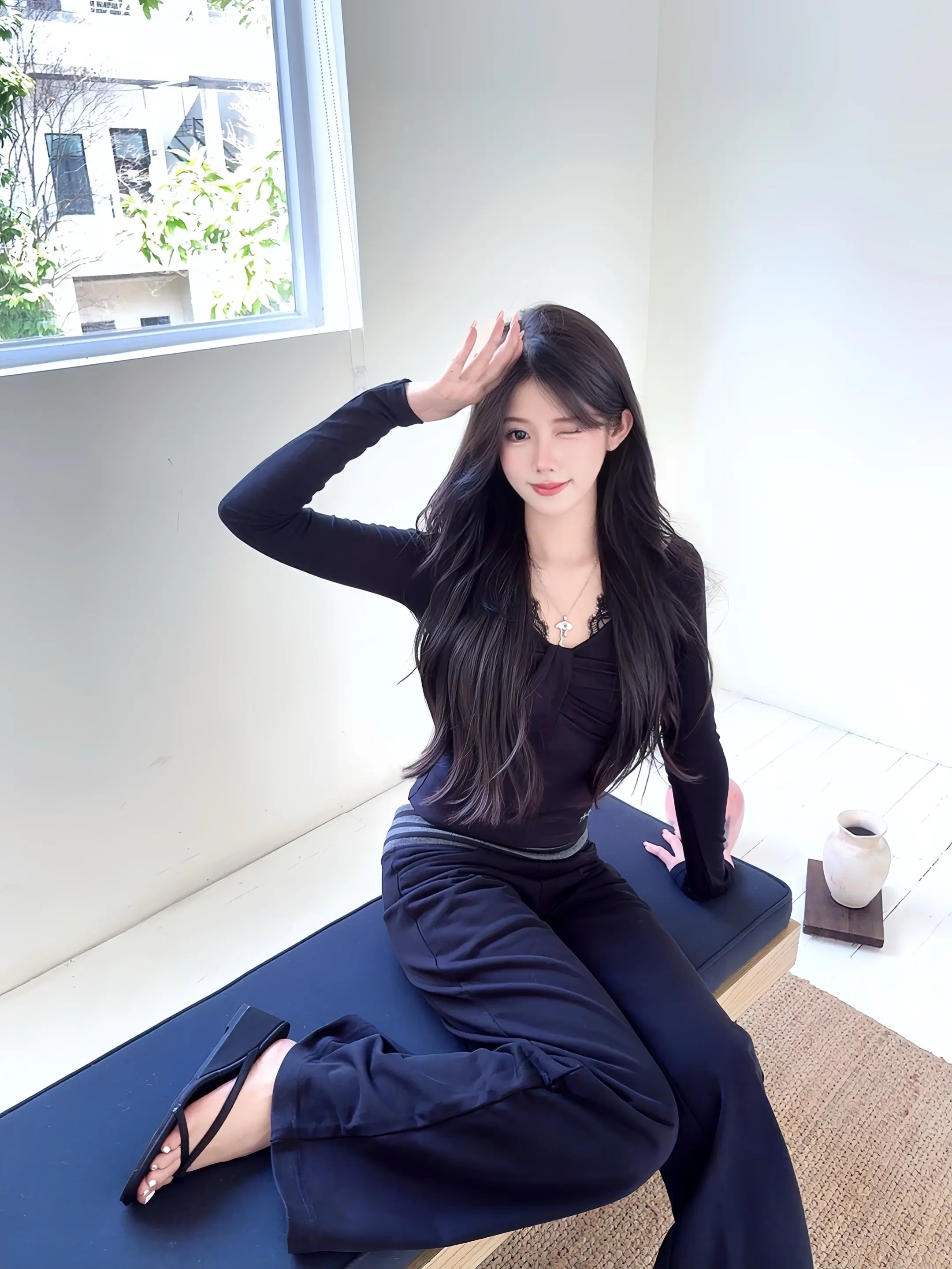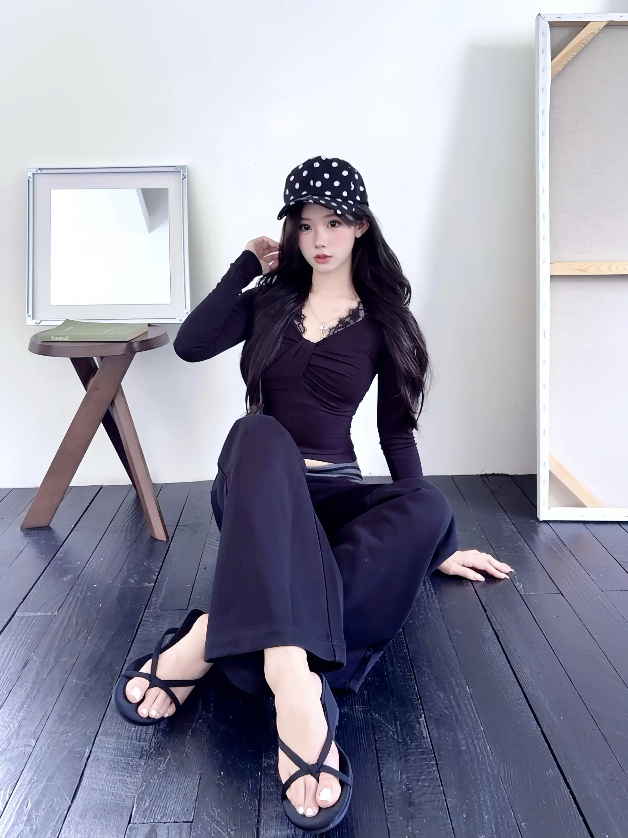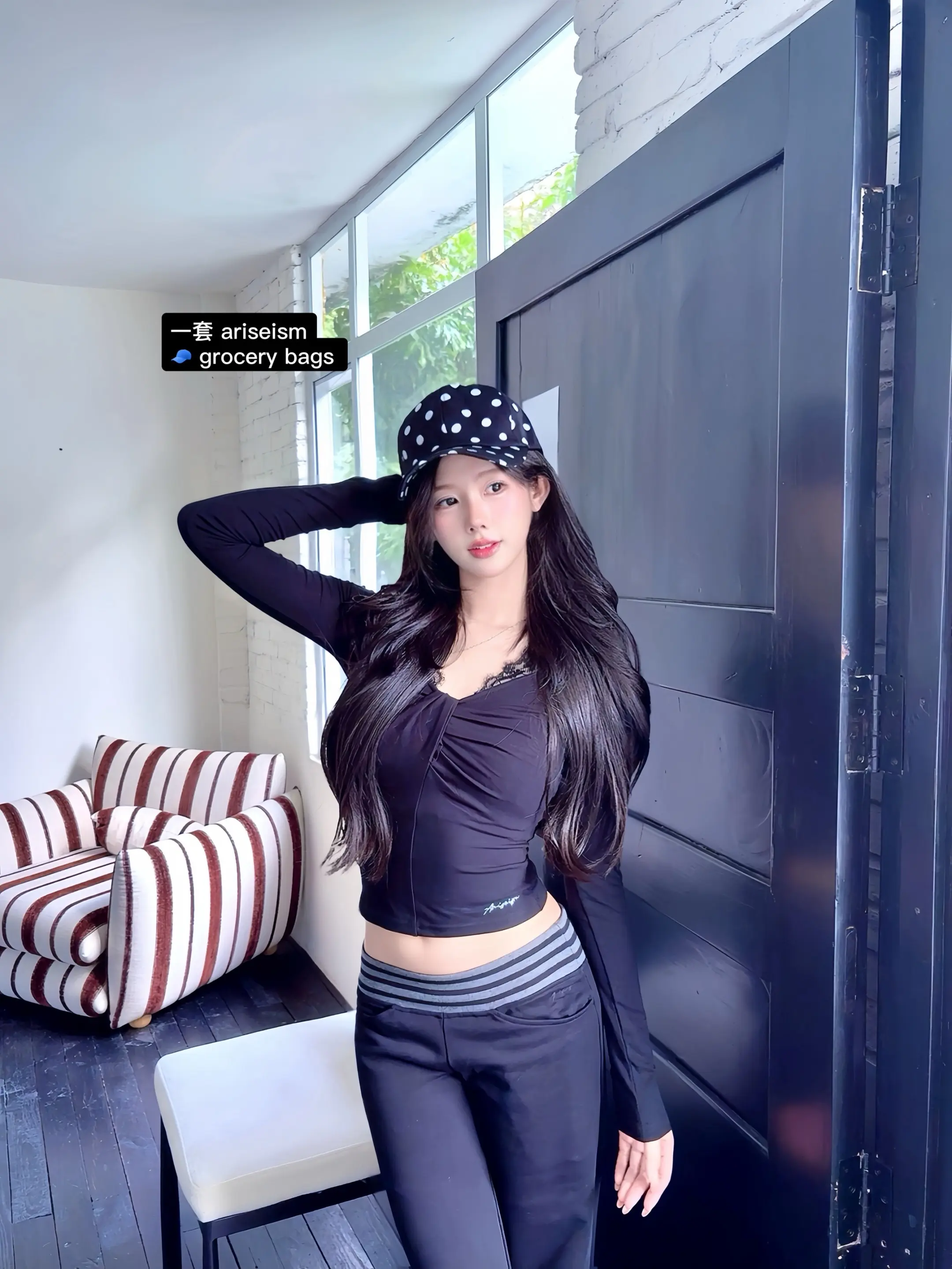 🖤。甜辣的一套 搭配波点棒球帽韩味很重!
