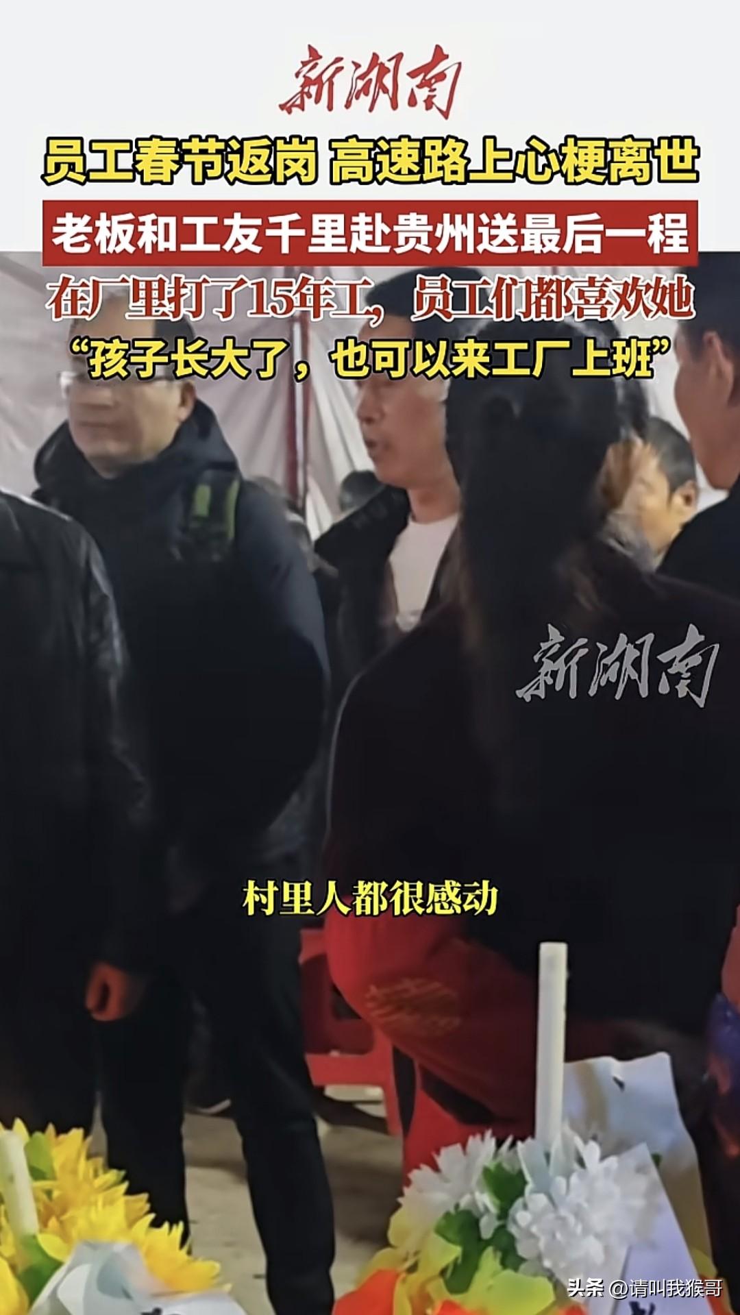 这大概是全网第一个员工去世,老板和工友辗转千里到其老家参加葬礼并送上慰问金的,不得不说这个老板很有人情味。贵州的练女士在这家公司已经工作了15年,在公司人缘很好,年后在返岗途中,因心梗离世,公司在得知消息后,老板和员工纷纷乘坐飞机和包车来到她的贵州老家,只为送她最后一程。老板还表示,练女士每年都是优秀员工,如果有必要,孩子大了也可以来工厂上班。这样的老板你觉得怎么样呢?