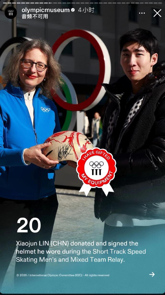 林孝埈捐赠头盔 【林孝埈给奥林匹克博物馆捐赠头盔】3月4日消息,奥林匹克博物馆称