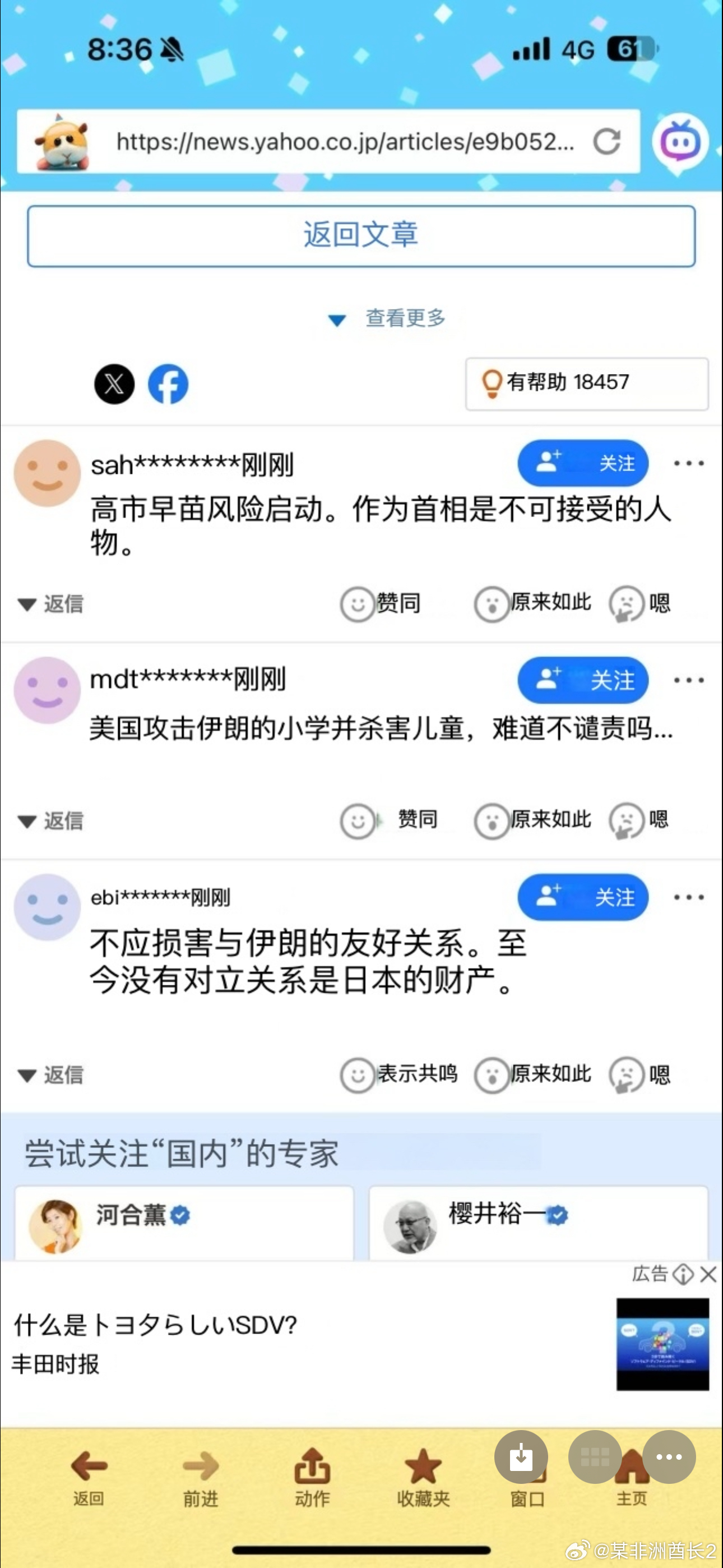 对美以屠杀平民默不作声的高市昨天和德国总理通话时谴责了伊朗攻击周围国家美军基地的行为