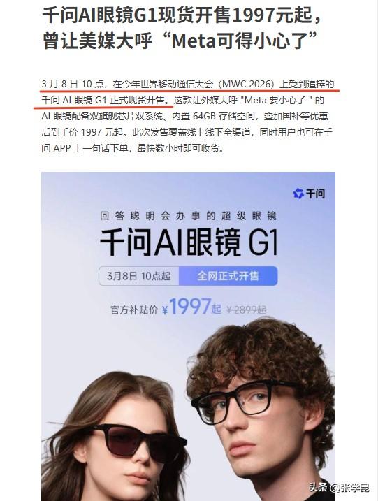 就在今天,这款让外媒为之破防的千问AI眼镜G1正式现货发售,向我们露出了它的庐山真面目。