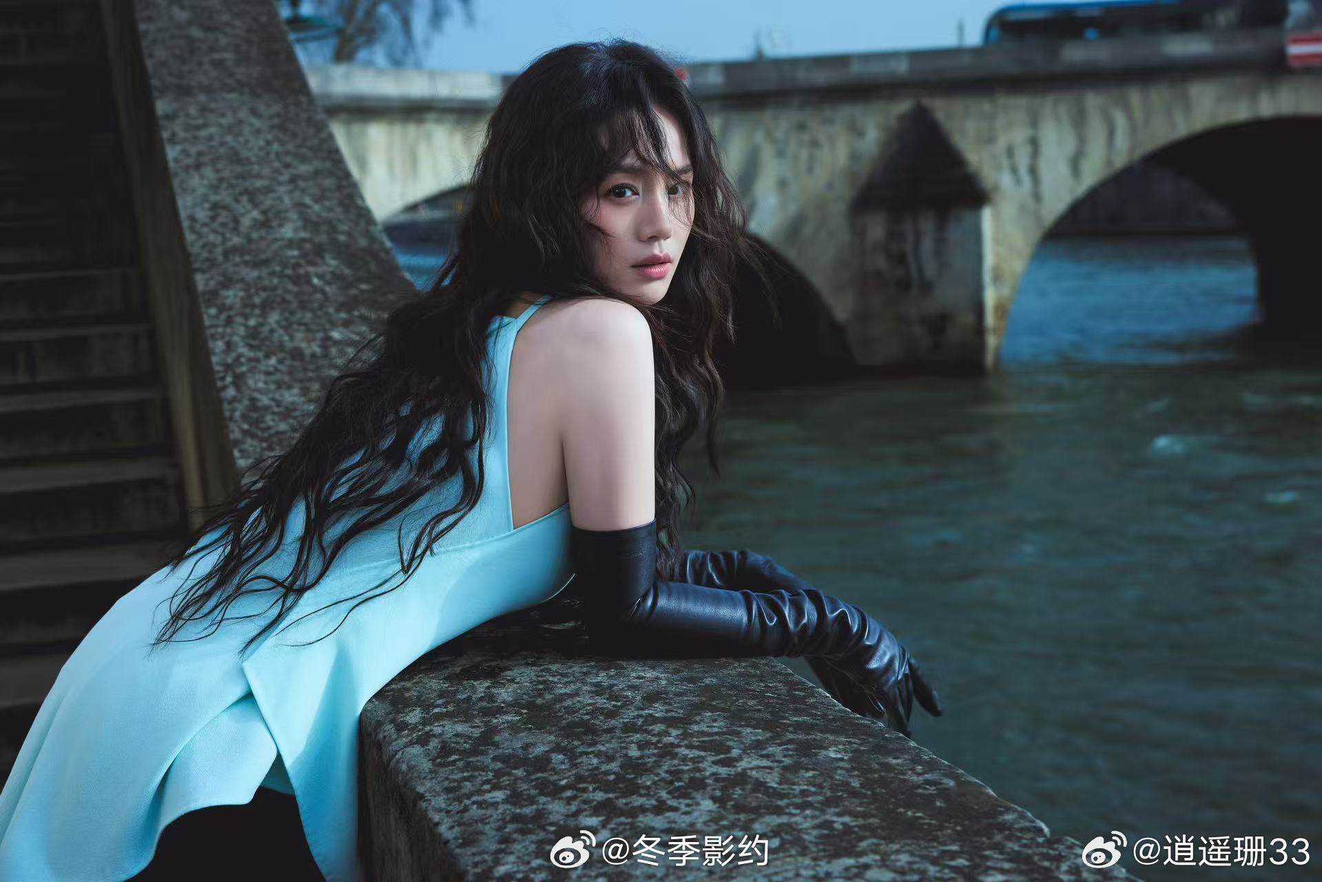 马思纯把撞色玩明白了 看到马思纯的撞色造型直接惊艳,冷蓝眼影和暖调底妆的碰撞,加上薄荷绿黑纱,色彩张力拉满。