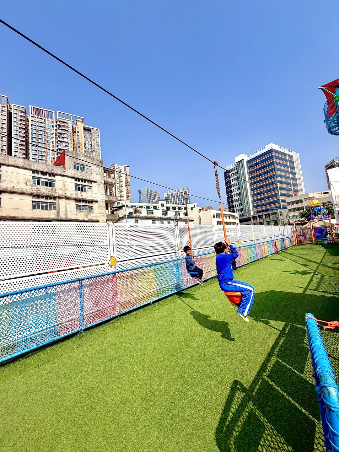 园区有遮阴休息区,家长能坐着歇会儿刷手机📱