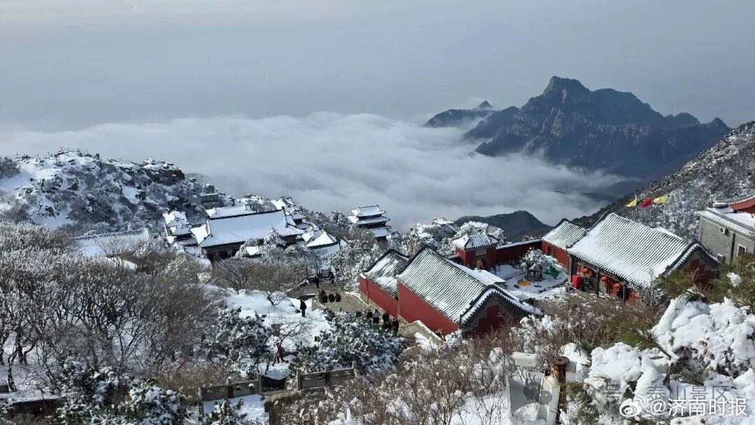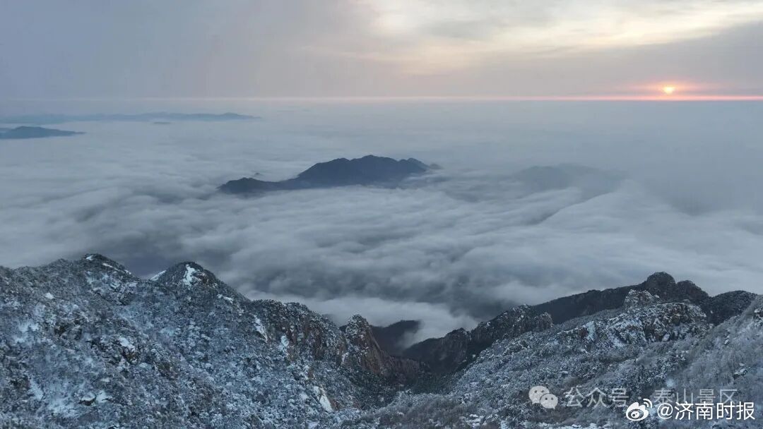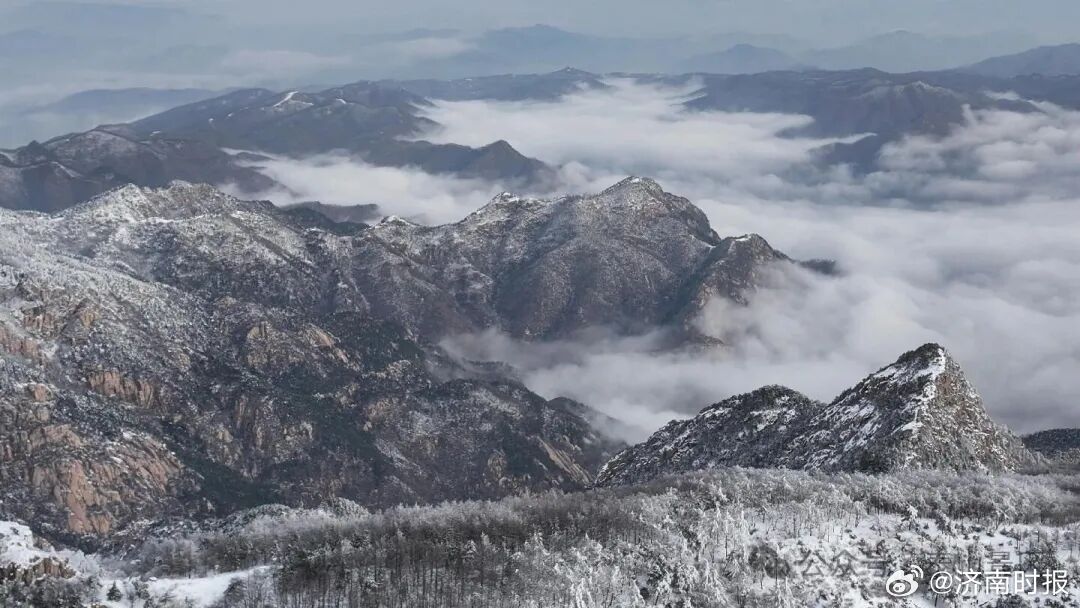 【#雪后泰山每一帧都美得像壁纸#】雪后初霁的泰山,银装素裹,云海翻腾,呈现出一幅