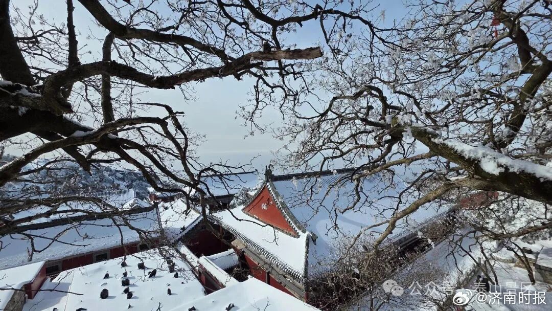 【#雪后泰山每一帧都美得像壁纸#】雪后初霁的泰山,银装素裹,云海翻腾,呈现出一幅气势磅礴、震撼人心的雪日盛景。雪落无声,漫山遍野银装素裹,苍松翠柏缀满琼枝,红墙古瓦覆雪映辉。连绵起伏的峰峦在云雾中若隐若现,既有北国风光的壮阔,又不失江南山水的灵秀,一步一景,皆如天然画卷。(泰山景区)
